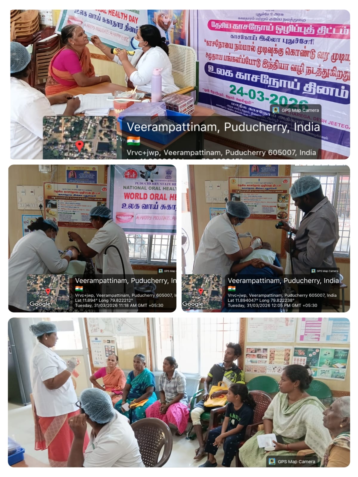 As part of World Oral Health Day *(WOHD)* celebrations, an oral screening and treatment camp was organized at the Veerampattinam Rural Health Centre on 31 March 2026.