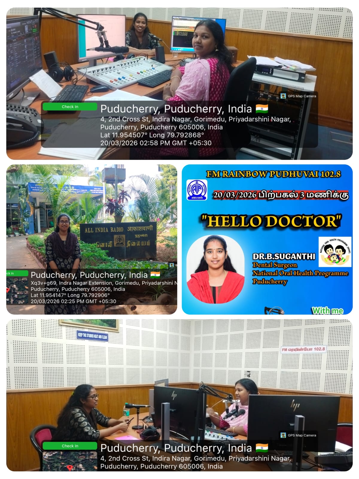 On account of *World Oral Health Day,* a live radio session was conducted on *20.03.2026* at *FM Rainbow 102.8* , a part of All India Radio. The session focused on highlighting the significance of the World Oral Health Day theme, “ *A Happy Mouth is… A Happy Life.”*