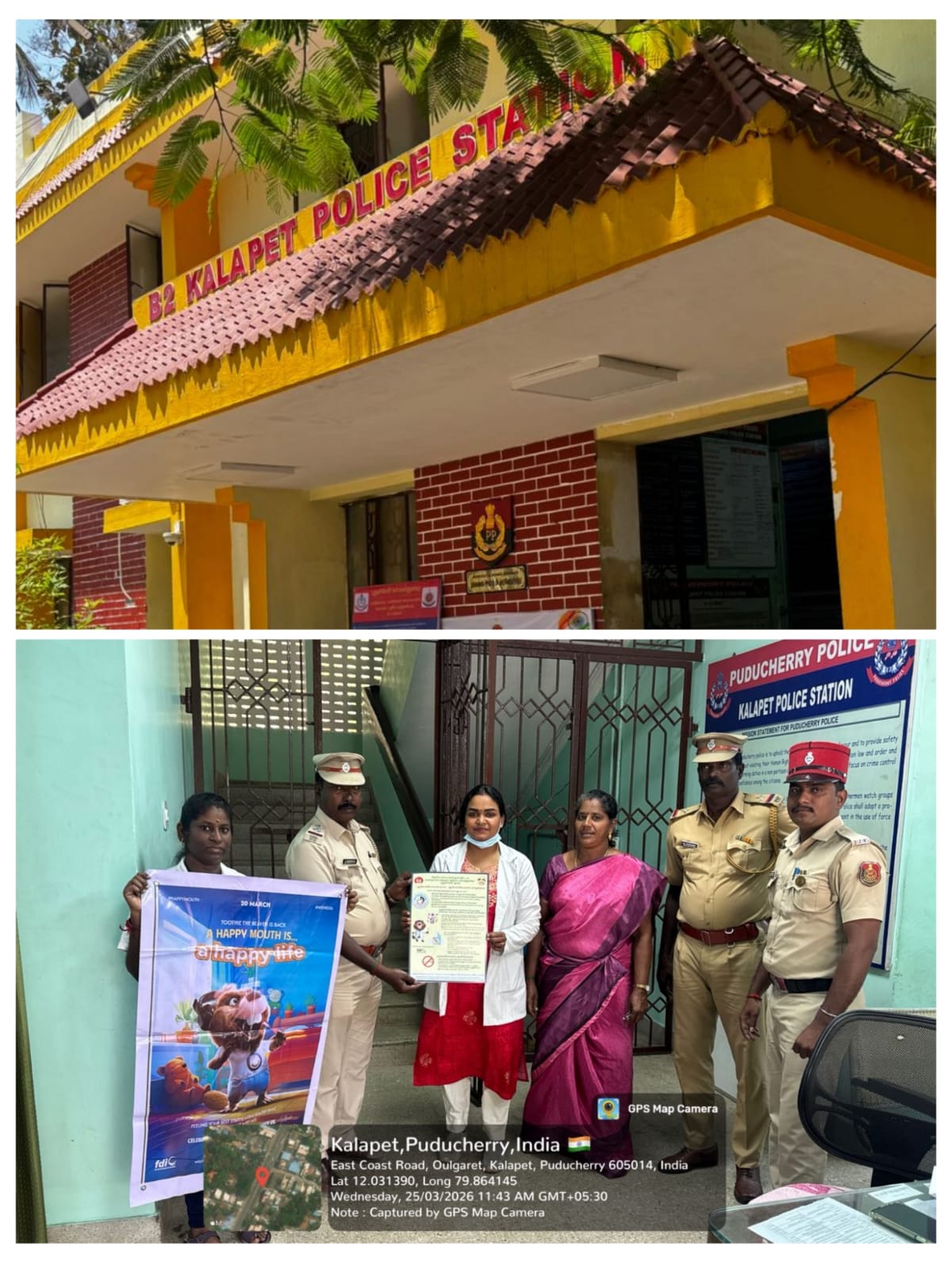 On the occasion of World Oral Health Day 2026, an oral health awareness program was conducted at B2 Kalapet Police Station. Oral hygiene instructions were provided to the participants, emphasizing proper brushing techniques and the importance of maintaining good oral health.