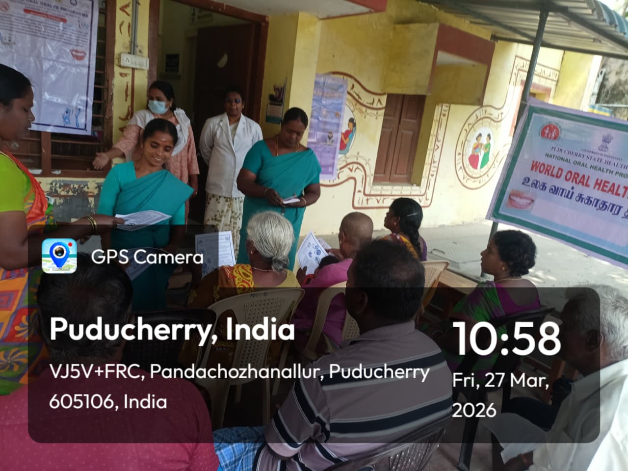 27/3/26 Dental unit- PHC Nettapakkam # WOHD 26 Celebration @ SUBCENTRE PANDASOZHANALLU.The NCD patients were given awareness on Oral Health and its relationship to overall wellness. Do's and don'ts in oral care were explained. Brushing techniques were demonstrated using dental models and posters. Ill effects of Tobacco and its vulnerability among adolescents were highlighted. Role of TCC services and NRT gums availability at the facility were stressed upon. Oral hygiene pledge was taken. Oral screening was done and referred to dental OPD, PHC Nettapakkam for dental management. Oral health and insights of Tobacco pamphlets were distributed for good oral hygiene practices and healthy living.Beneficiaries: 17