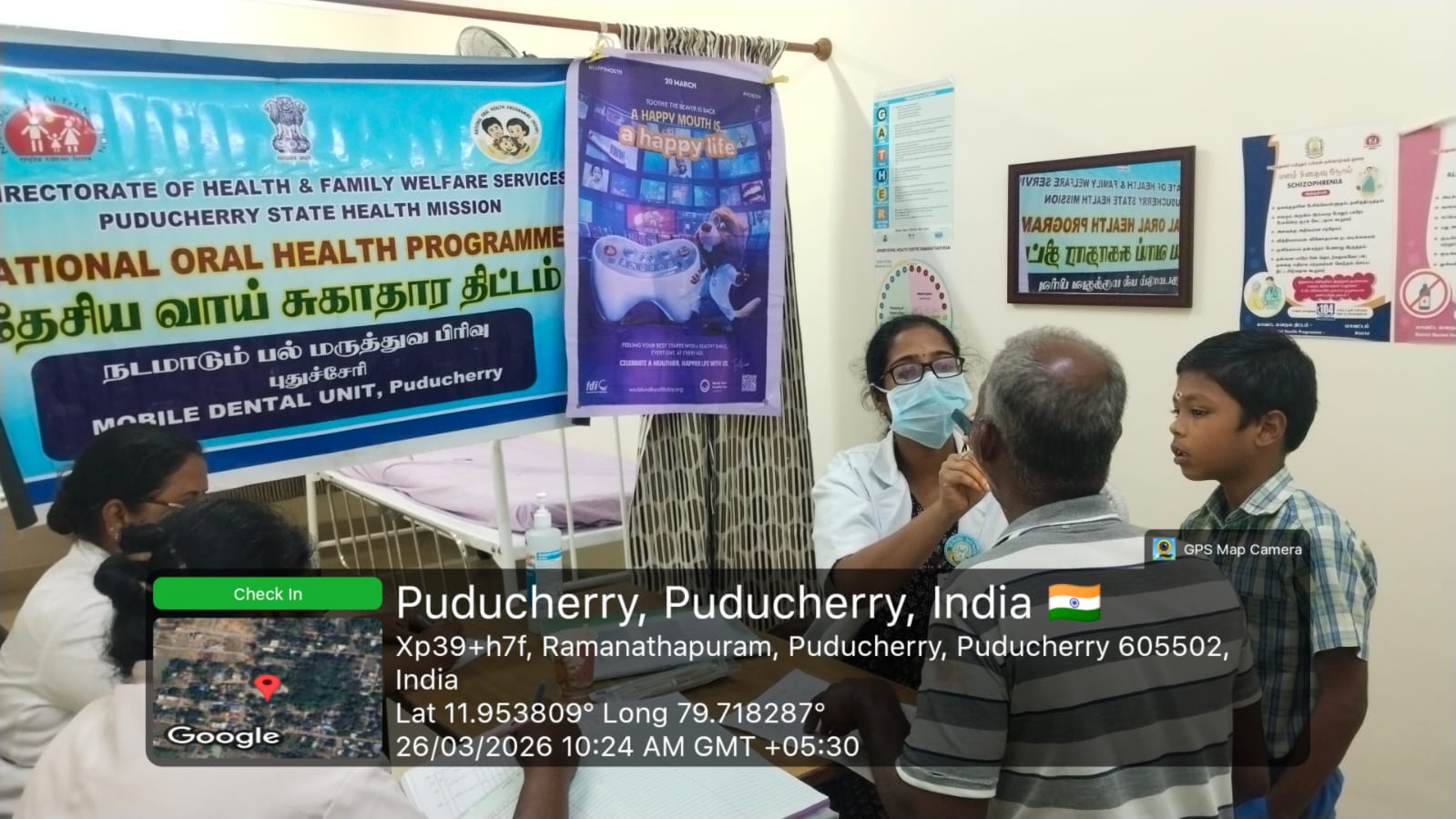 As part of World Oral Health Day *(WOHD)* celebrations, an oral screening and treatment camp was organized at the *JIPMER Ramanathapuram Rural Health Centre* on 26th March 2026. The program aimed to create awareness about the importance of oral hygiene and the prevention of dental diseases among the rural population.During the camp, comprehensive oral screening was carried out, and basic dental treatments were provided to the attendees. Approximately *45* beneficiaries utilized the services and received appropriate guidance for maintaining good oral health. Brushing techniques were effectively demonstrated using dental models, along with the support of IEC posters, making the session more interactive and easy to understand.
