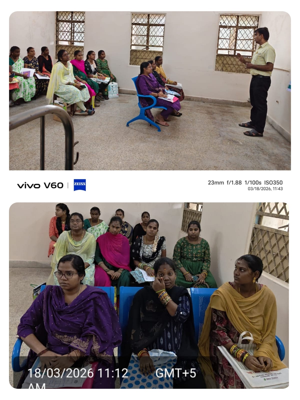 On 18/03/2026, as part of World Oral Health Day (WOHD) celebrations, an oral health awareness program was conducted at CHC Mannadipet under the theme “Happy Mouth is a Happy Life.” The session focused on antenatal (ANC) mothers, emphasizing the importance of maintaining good oral hygiene during pregnancy. Proper brushing techniques were demonstrated to ensure effective plaque removal and prevention of dental problems. Additionally, important do’s and don’ts during the pregnancy period were clearly explained to promote both maternal and oral health. The program benefited a total of 25 participants, including 2 ANMs and 3 ASHA workers, who actively took part in the session
