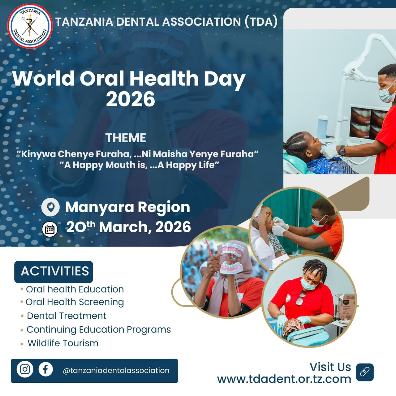 This year, the Tanzania Dental Association will participate in the global commemoration of World Oral Health Day (WOHD 2026). The event will be preceded by a week-long series of activities which will include:-