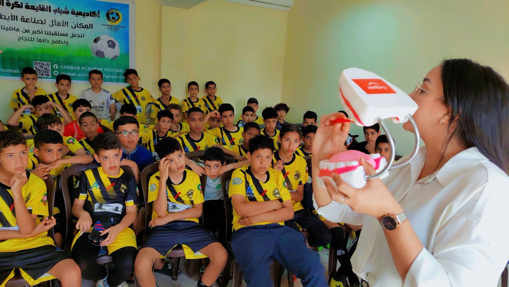 section AMPBD Agadir a mené une action de prévention et de sensibilisation bucco-dentaire au profit de 250 enfants de l'Académie Jeunesse El Kliaa de Football,