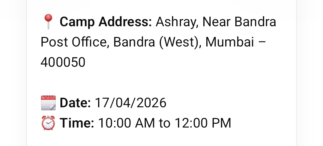 Venue: Ashray, near Bandra Post Office, Bandra West, Mumbai
