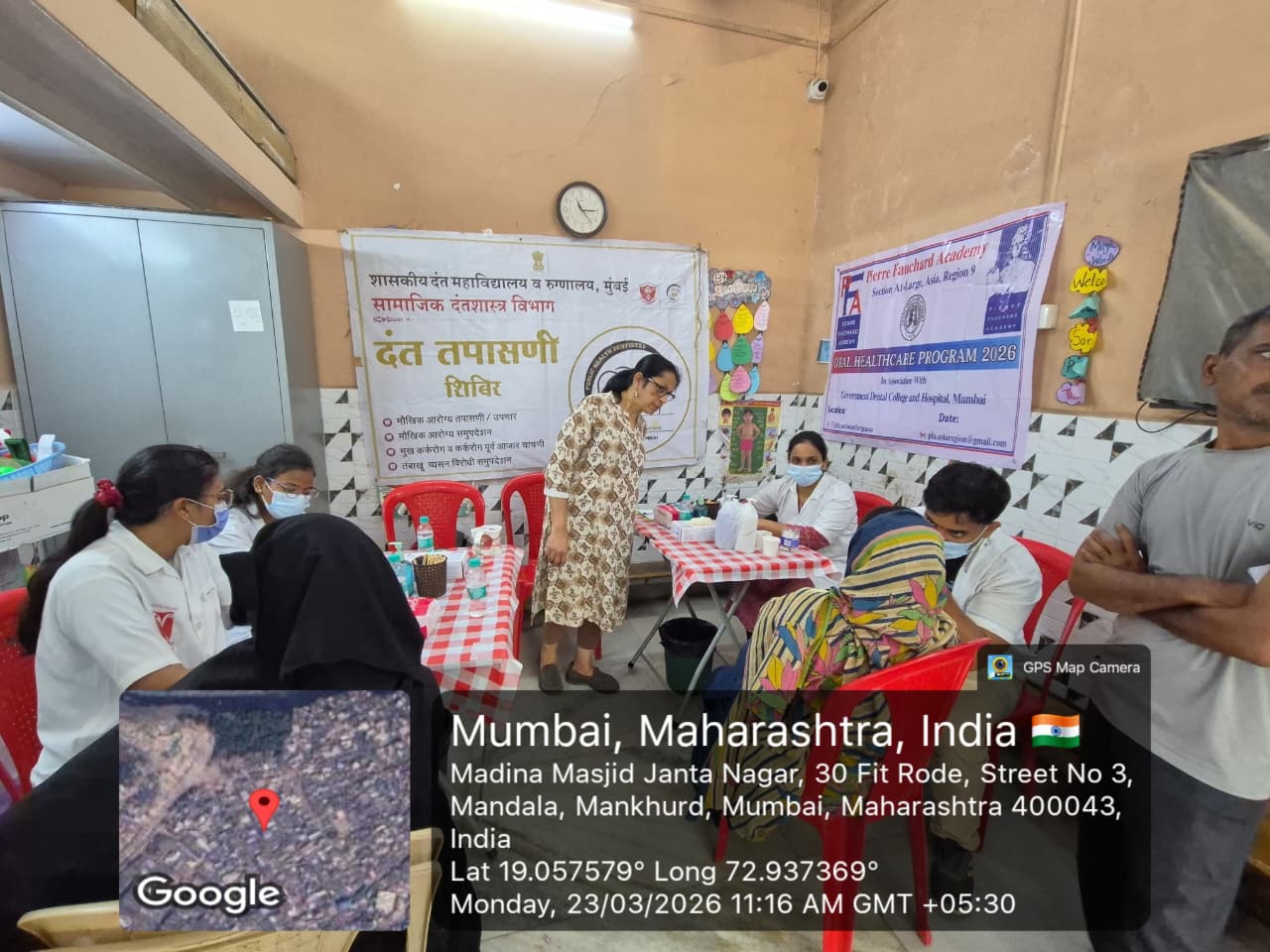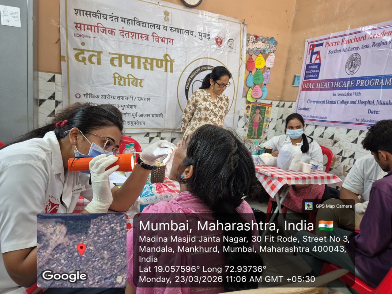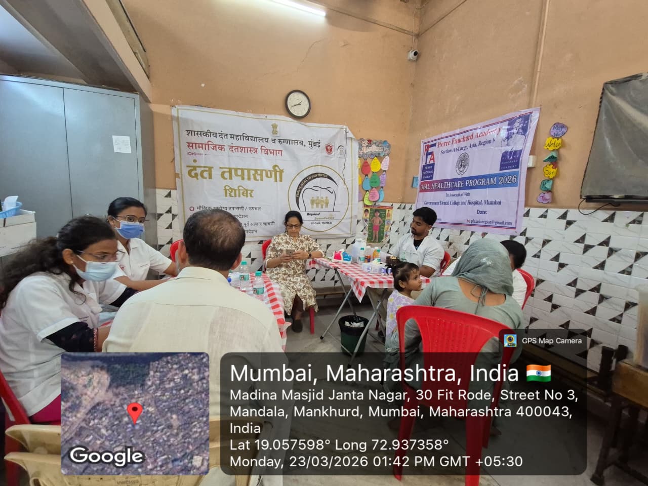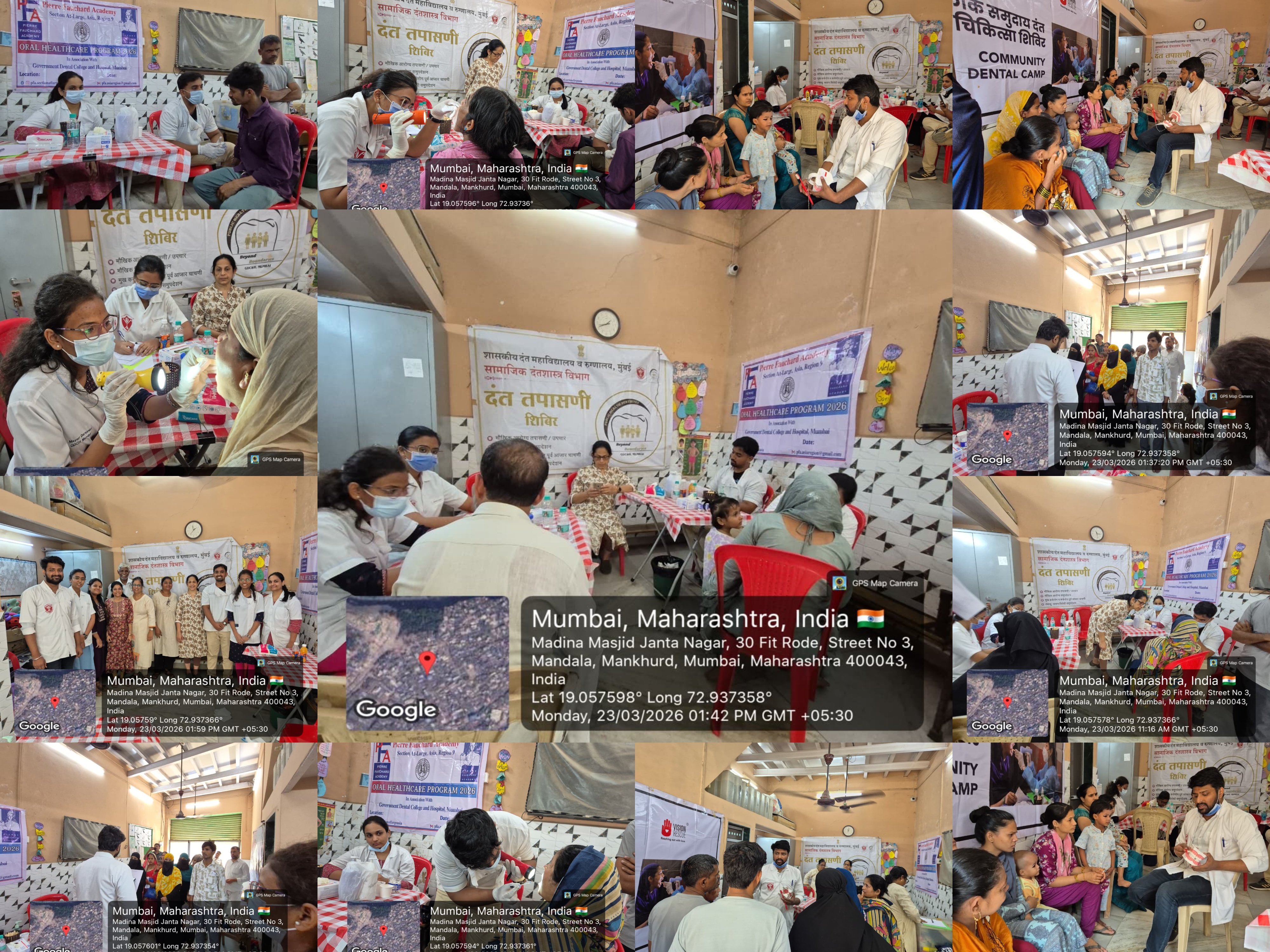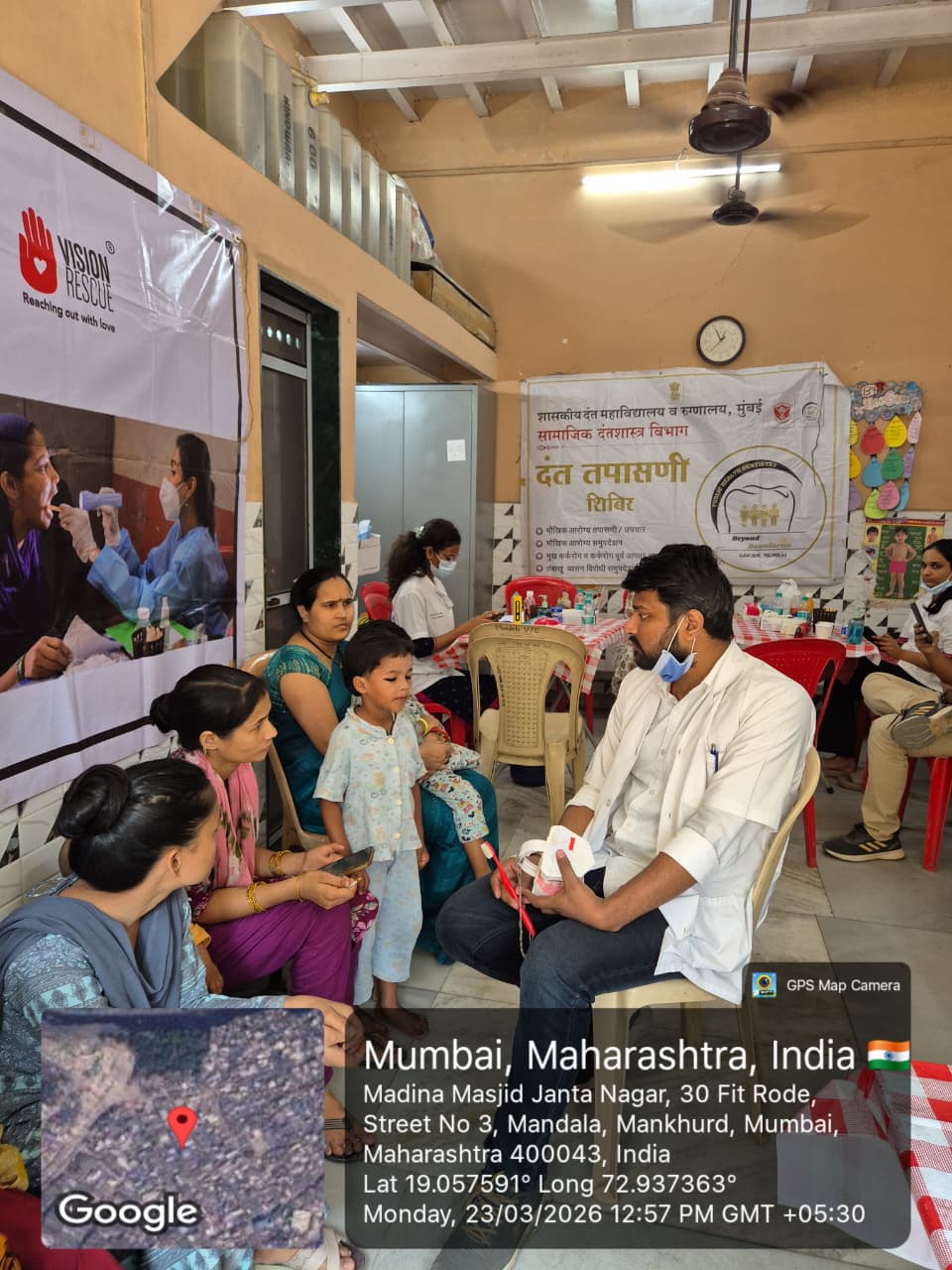 Oral health continues to be a major public health concern among underserved urban communities, where limited access to care, lack of awareness, and high prevalence of risk factors contribute to a significant burden of preventable diseases. As part of the World Oral Health Day 2026 campaign, and in alignment with the global initiative, “A Happy Mouth is a Happy Life”, the Department of Public Health Dentistry, Government Dental College & Hospital, Mumbai, conducted a comprehensive Oral Health Screening and Education Camp at Madina Masjid, Janta Nagar, 30 Road, Mandala, Mankhurd. This outreach initiative aimed to bring preventive oral healthcare services directly to the community, ensuring accessibility and early intervention.