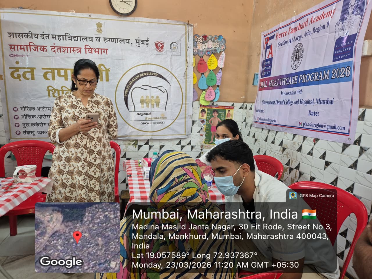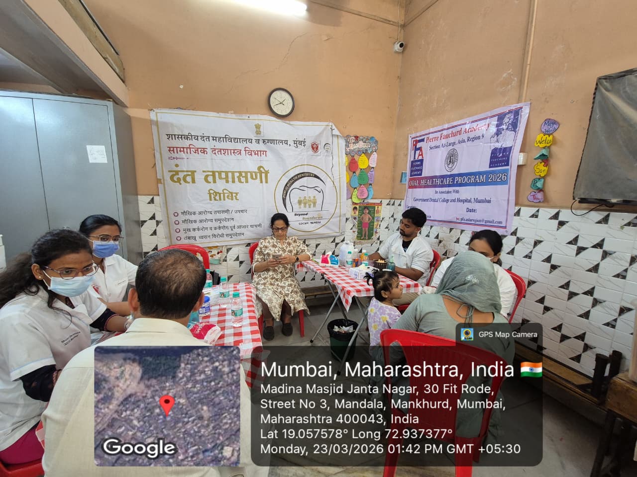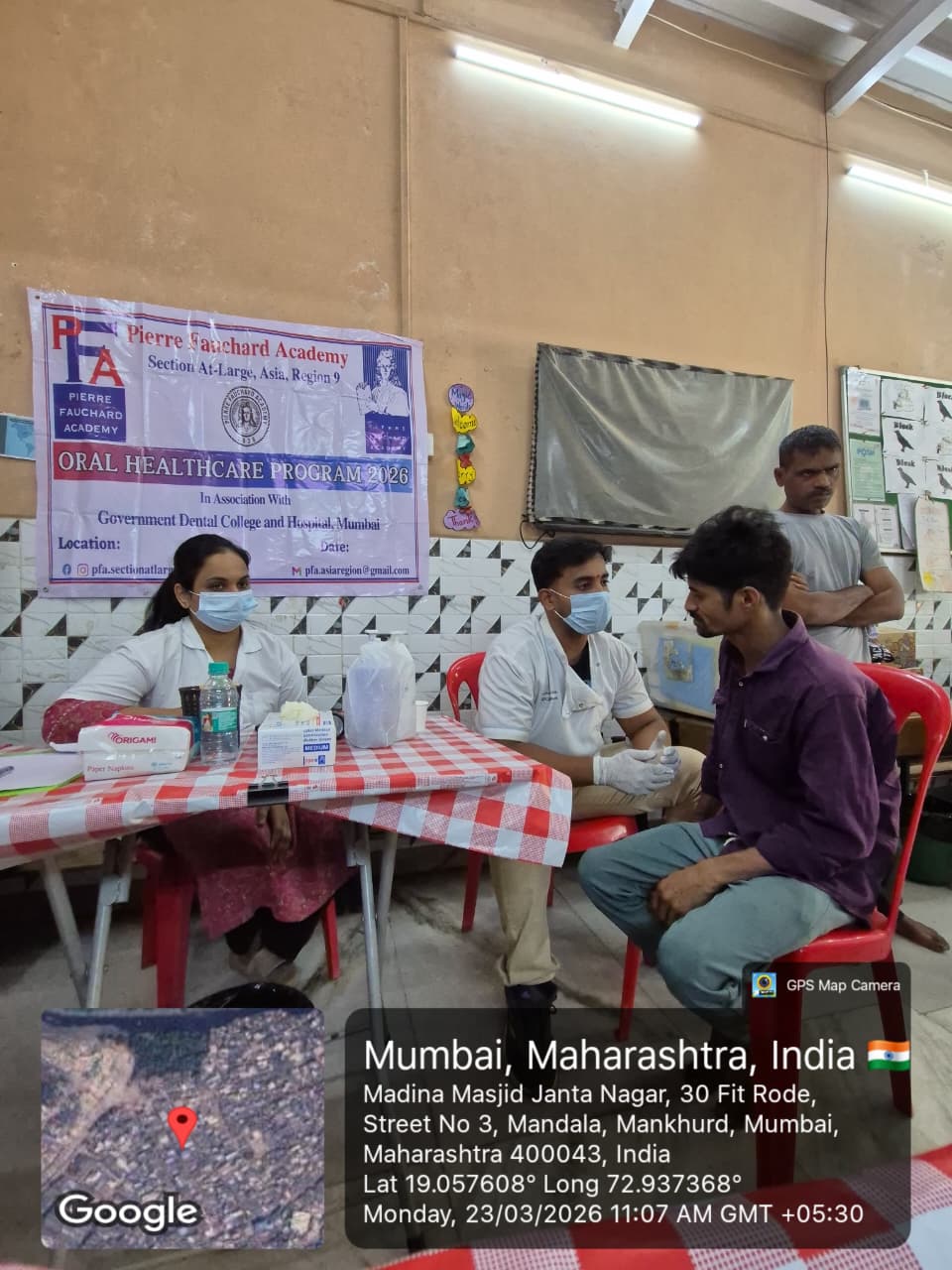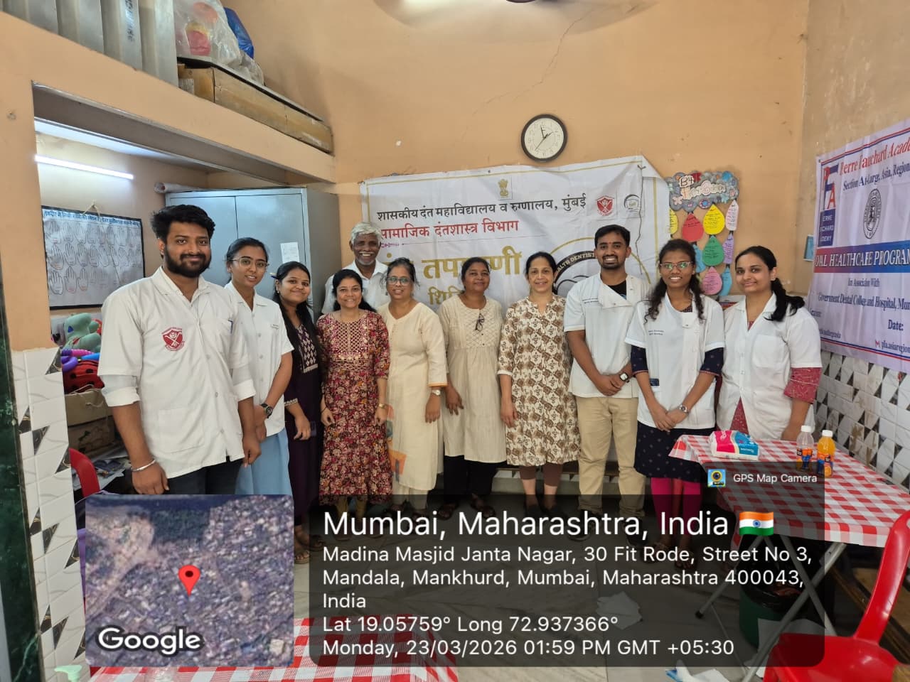 Oral health continues to be a major public health concern among underserved urban communities, where limited access to care, lack of awareness, and high prevalence of risk factors contribute to a significant burden of preventable diseases. As part of the World Oral Health Day 2026 campaign, and in alignment with the global initiative, “A Happy Mouth is a Happy Life”, the Department of Public Health Dentistry, Government Dental College & Hospital, Mumbai, conducted a comprehensive Oral Health Screening and Education Camp at Madina Masjid, Janta Nagar, 30 Road, Mandala, Mankhurd. This outreach initiative aimed to bring preventive oral healthcare services directly to the community, ensuring accessibility and early intervention.