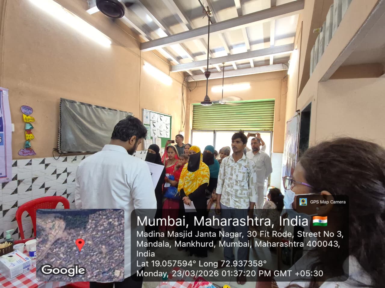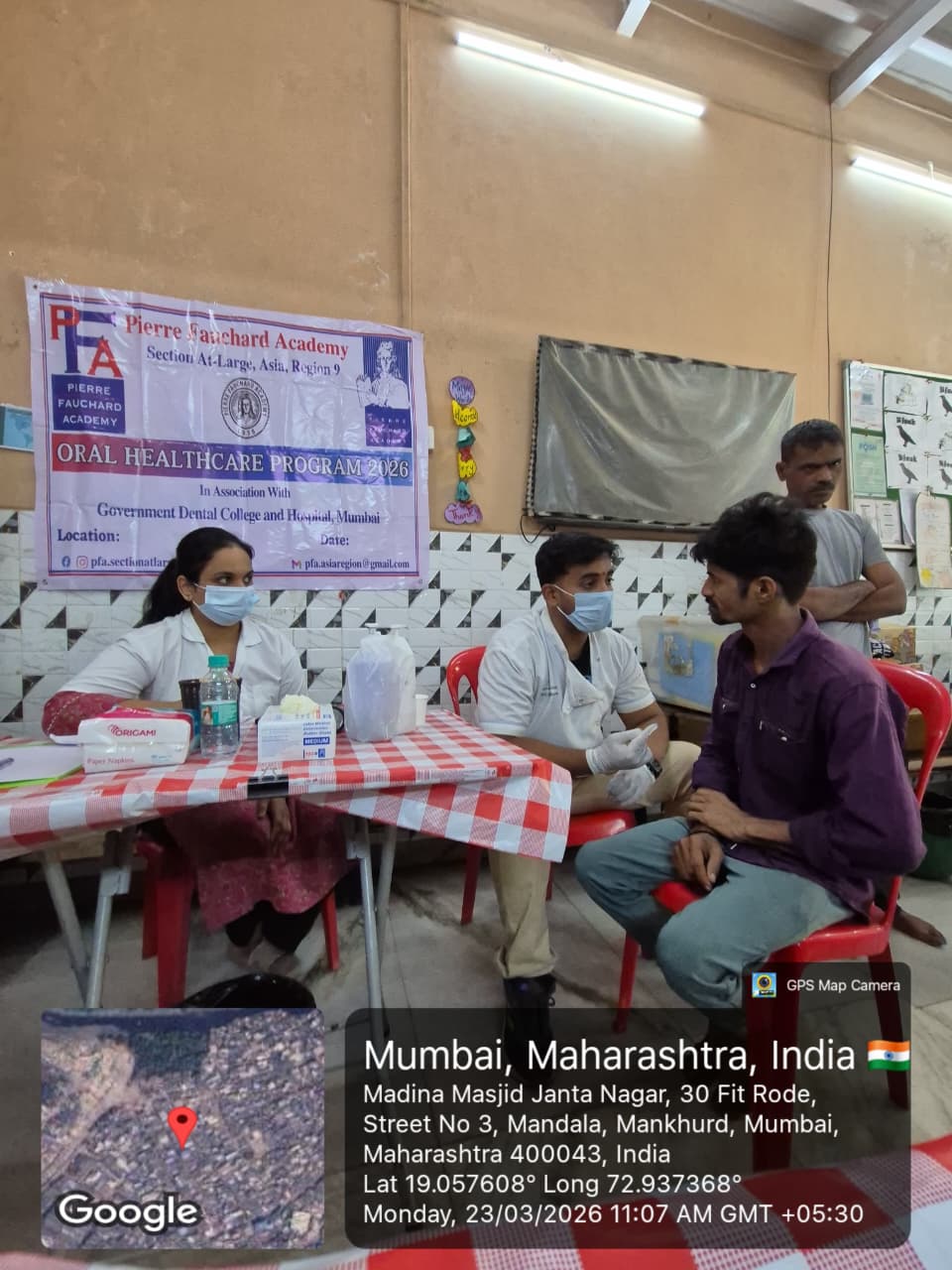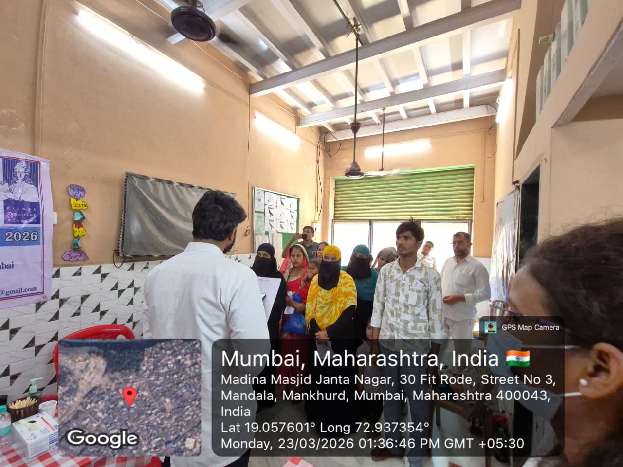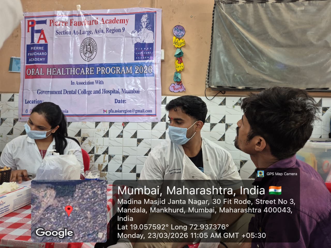 Oral health continues to be a major public health concern among underserved urban communities, where limited access to care, lack of awareness, and high prevalence of risk factors contribute to a significant burden of preventable diseases. As part of the World Oral Health Day 2026 campaign, and in alignment with the global initiative, “A Happy Mouth is a Happy Life”, the Department of Public Health Dentistry, Government Dental College & Hospital, Mumbai, conducted a comprehensive Oral Health Screening and Education Camp at Madina Masjid, Janta Nagar, 30 Road, Mandala, Mankhurd. This outreach initiative aimed to bring preventive oral healthcare services directly to the community, ensuring accessibility and early intervention.