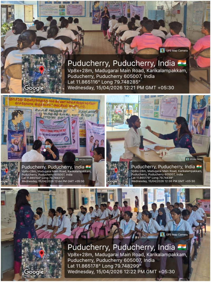 On 15.4.26, an awareness and screening camp was conducted at CHC Karikalampakkam for nursing students from RAAK and East Coast Colleges.
