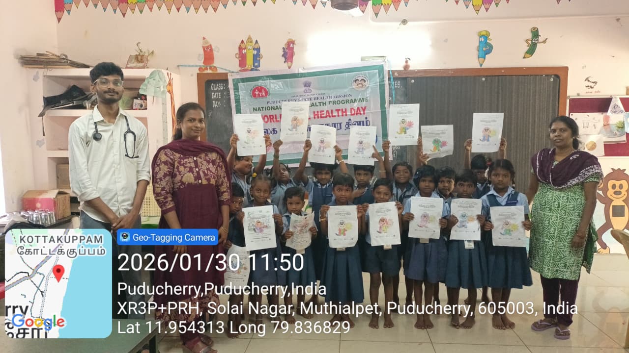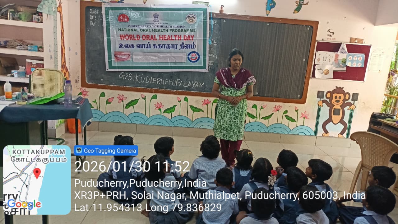 On 04.02.2026, an oral health awareness talk was conducted at PHC Bahour under the AAM program for AN clinic mothers and the general public. Nearly 40 mothers and community members benefited from the session. The importance of maintaining oral hygiene from early childhood was explained, with emphasis on starting brushing habits at the right age. Healthy food habits that support good oral health were discussed, along with the effects of sugary foods and frequent snacking. Awareness about harmful oral habits such as thumb sucking, nail biting, and tobacco use was also provided. Mothers were encouraged to monitor and guide their children towards maintaining good oral hygiene practices.