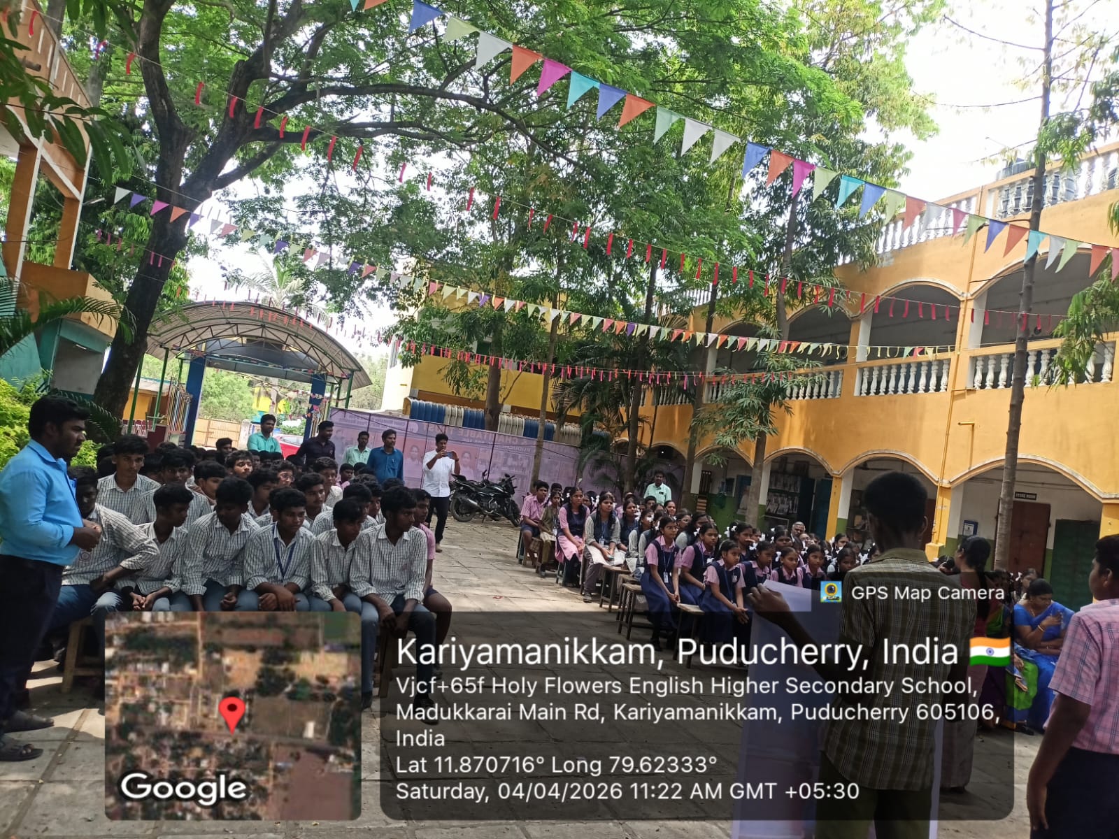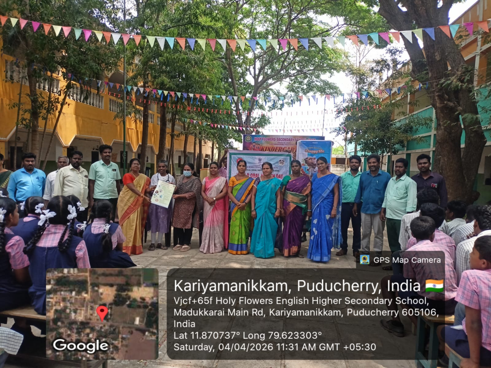 04.04.26 AAM PHC Nettapakkam # WOHD Celebration @ Holy Flowers English Higher Secondary School, Kariamanickam: The students were given awareness on Oral health - Do's and don'ts in oral care, Common dental problems and management, Bad oral behaviours and its intervention and management. Harmful effects of Tobacco and its vulnerability among adolescents were highlighted. Brushing techniques were demonstrated using dental models and posters. Oral health poster and pamphlets were distributed. Oral hygiene pledge was taken.