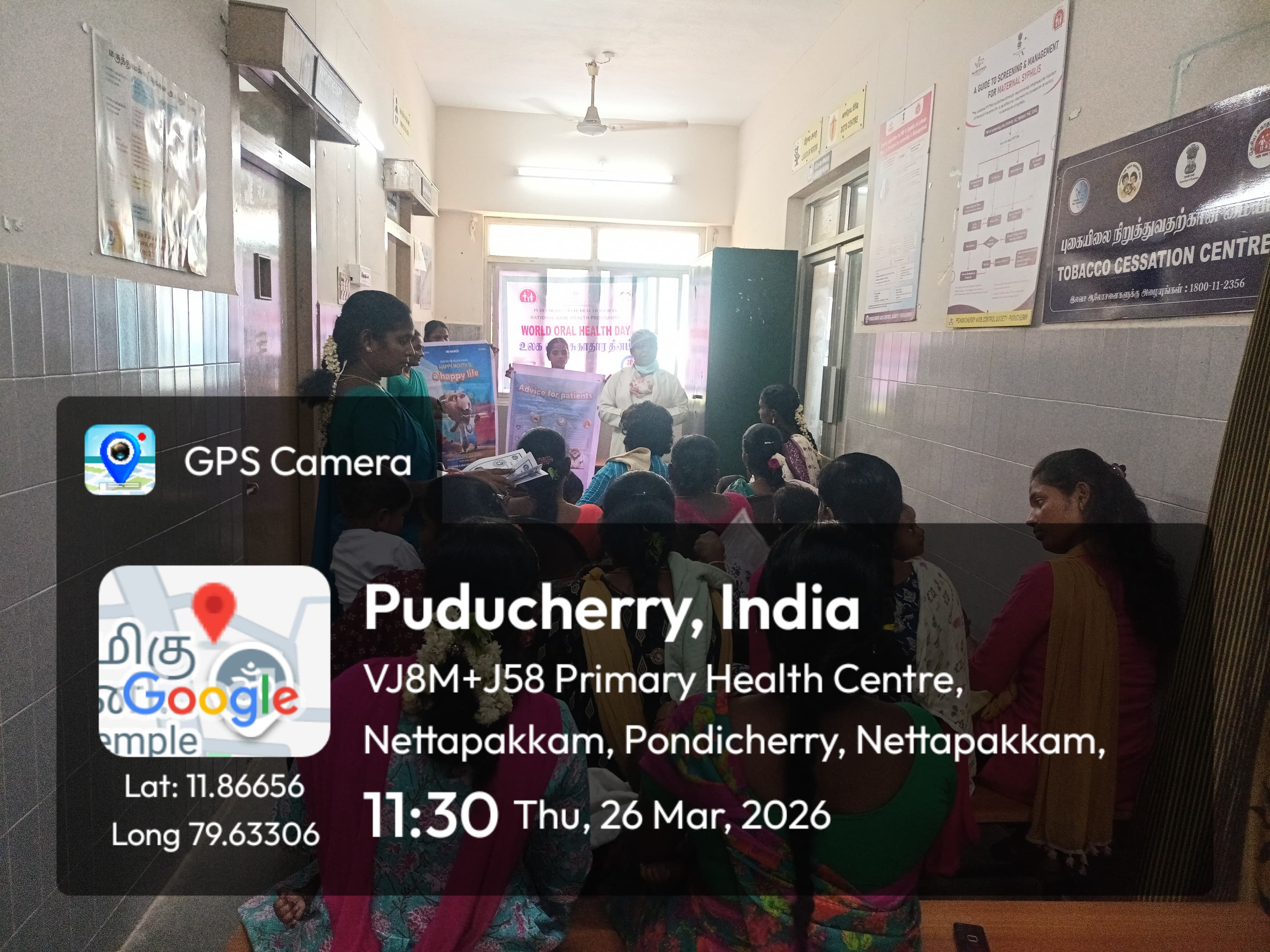 26/03/26 Dental unit, PHC Nettapakkam # WOHD 2026 Celebration @ Well Baby clinic: The mothers were given awareness on child's teeth and oral health from birth and to practice healthy habits to prevent / reduce tooth decay in infants and children. Steps to clean the gum pads after feeding were enunciated. Bad oral behaviours like mouth breathing, thumb sucking, nail biting, lip biting, cheek biting and tongue thrusting were highlighted and its intervention at the earliest were stressed upon for good jaw and tooth development. Insights were given on habit breaking appliance, advantages and disadvantages of oral pacifiers, role of fluoridated tooth paste and regular dental visit. Brushing techniques were demonstrated using dental models and posters. Ill effects of Tobacco and its impact on children were emphasised. Oral hygiene pledge was taken. Oral health pamphlets were distributed to promote good oral behaviours and for future references.