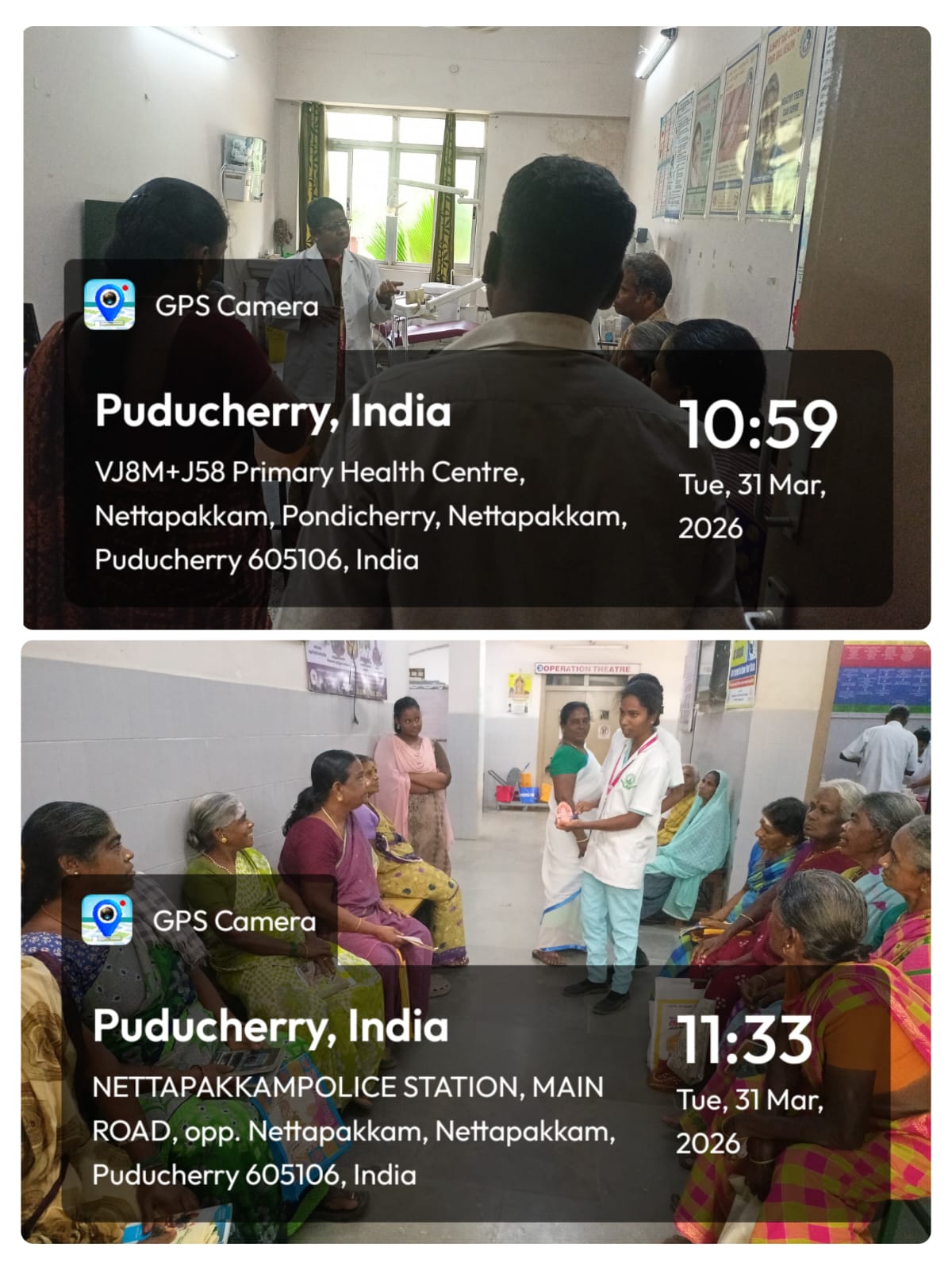 31.03.26 @ PHC NETTAPAKKAM # WOHD 26 Celebration: The OPD and the NCD patients were given awareness on Oral hygiene measures to promote good oral hygiene practices. Harmful effects of Tobacco and its impact on health and society were highlighted. Brushing techniques were demonstrated using dental models and posters.Beneficiaries: 38
