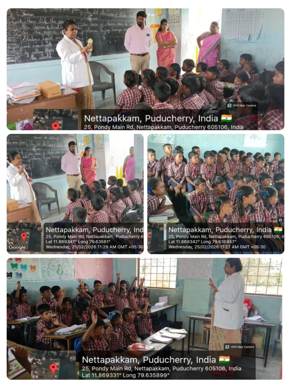 Health Staff: Dr M Helene Dental Surgeon/ TCC Incharge PHC Nettapakkam, Sankar Devi Dental Assistant."