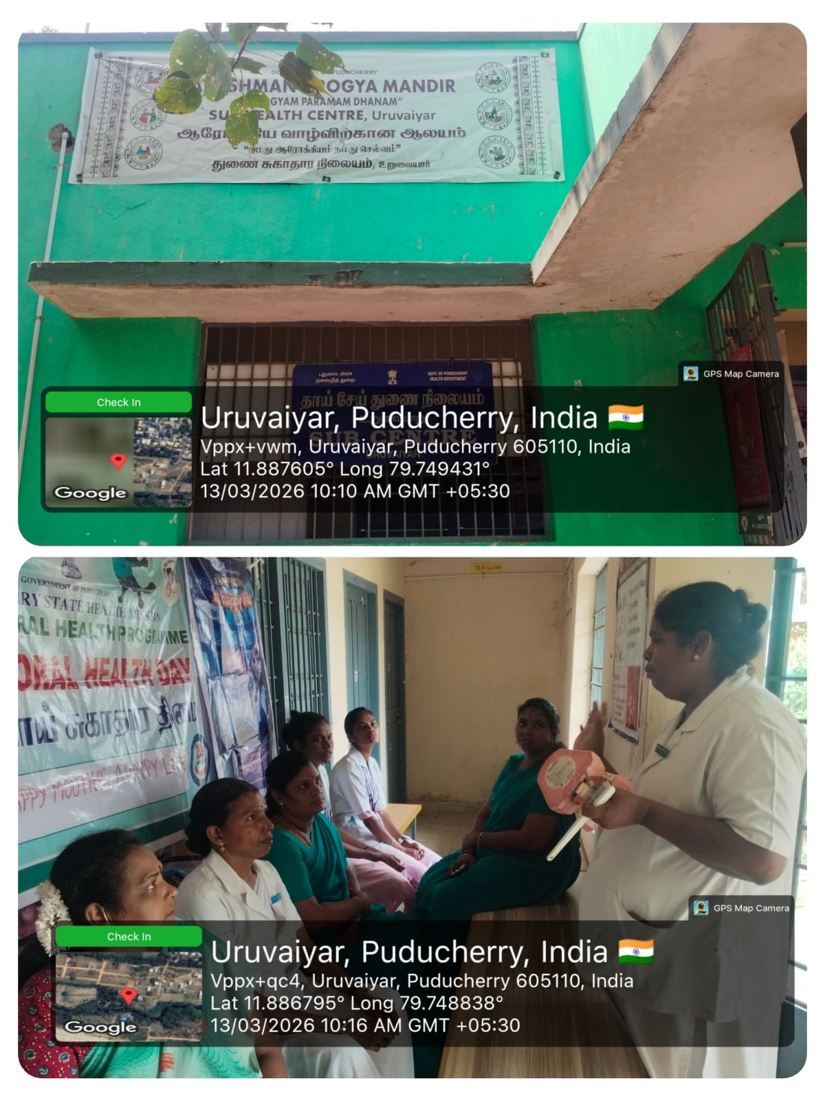 As a part of _World Oral Health Day celebration_ , a dental orientation session was conducted for the health workers at the *Sub-Center, Uruvaiyar* , on 13.03.2026. Nearly _15_ health workers participated and benefited from the session. The theme “ *Happy Mouth is a Happy Life”* was explained, highlighting the importance of maintaining good oral hygiene, early detection of dental problems, and promoting oral health awareness among the community. The staff actively participated and gained useful knowledge to educate the public.