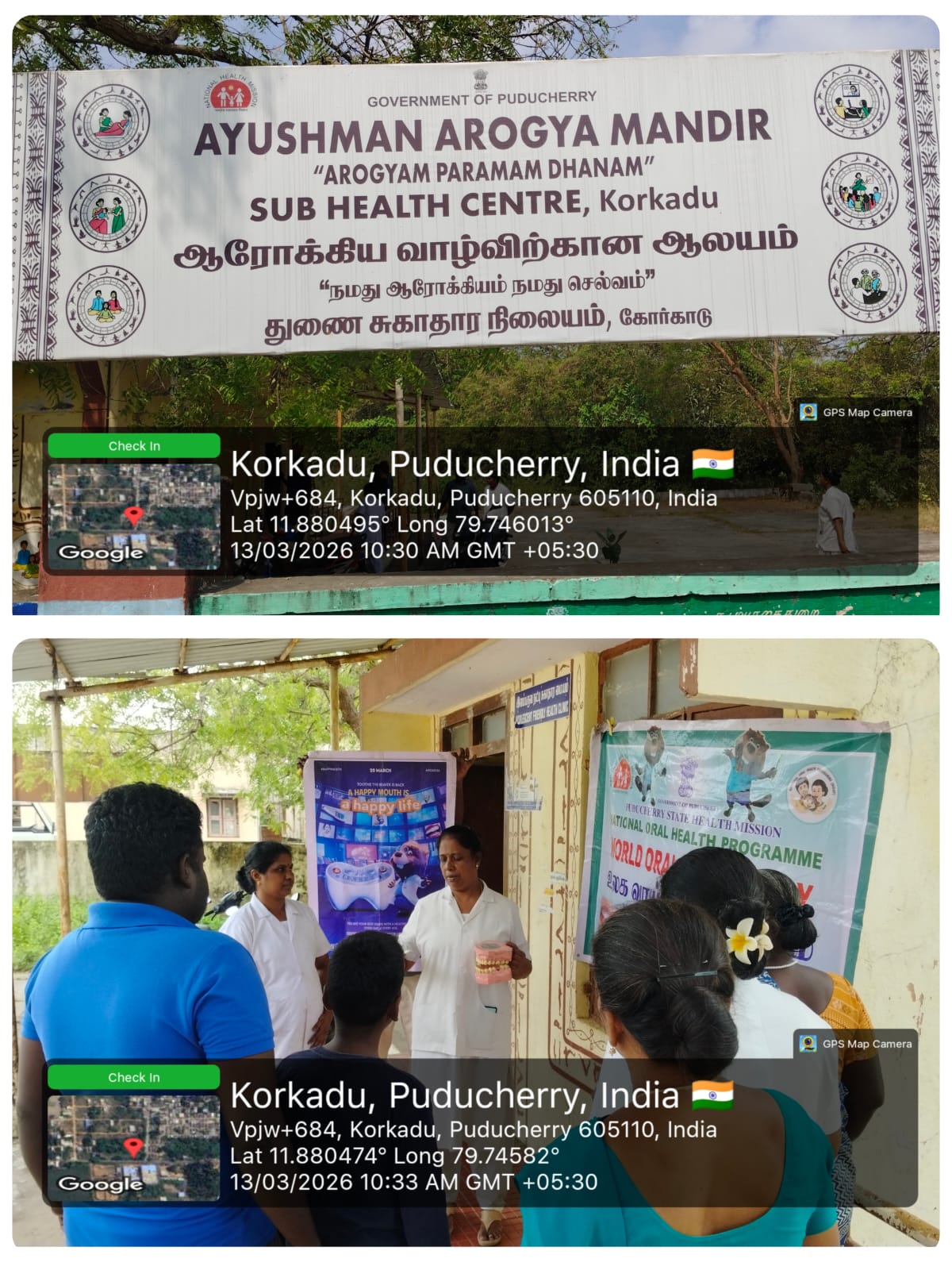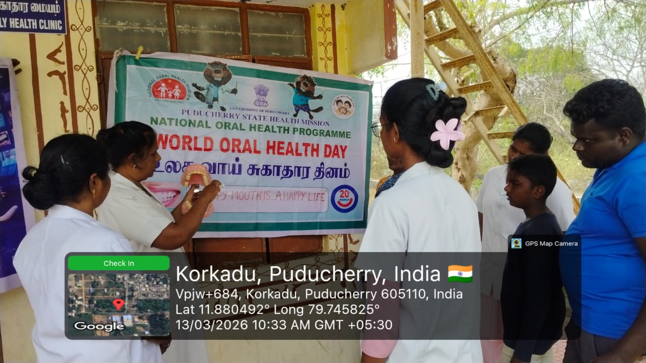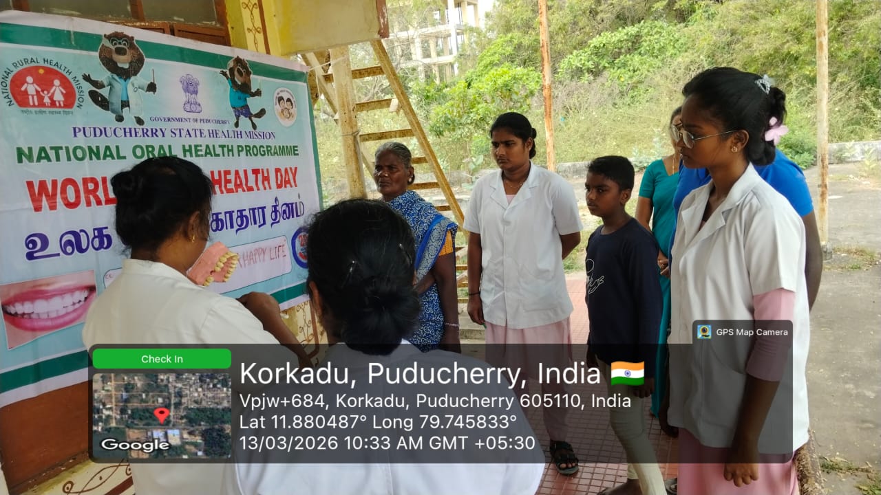 WOHD celebration : An oral health awareness program was conducted for the general public on 13th March 2026 at *SHC - Korkadu* . Dental models were used to demonstrate proper brushing techniques and explain the importance of maintaining good oral hygiene. Participants were educated about common dental problems and preventive care. Nearly _20_ beneficiaries benefited from this program.
