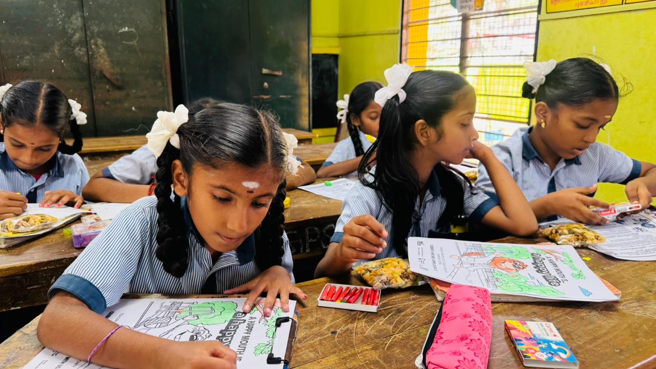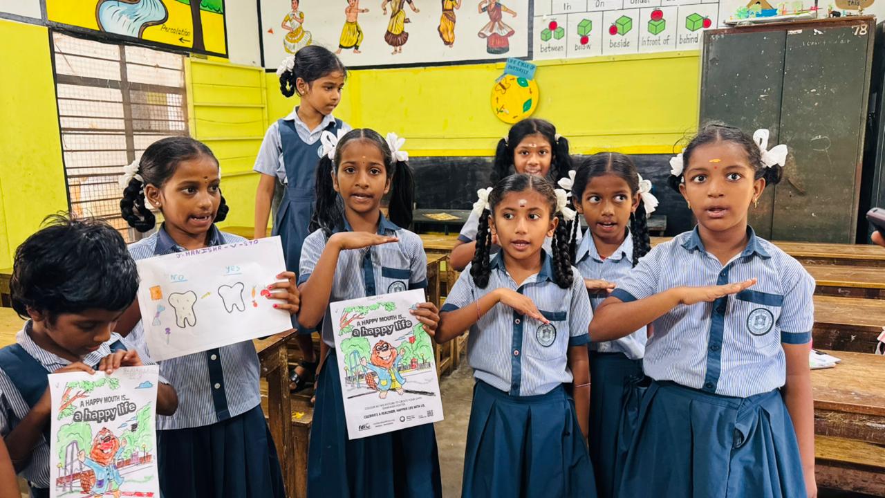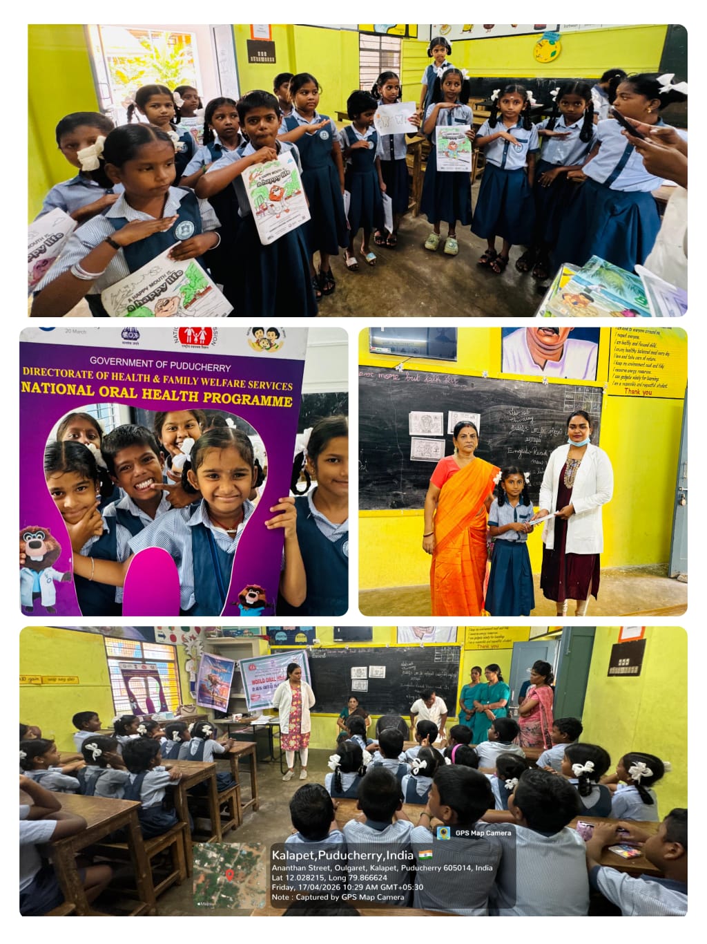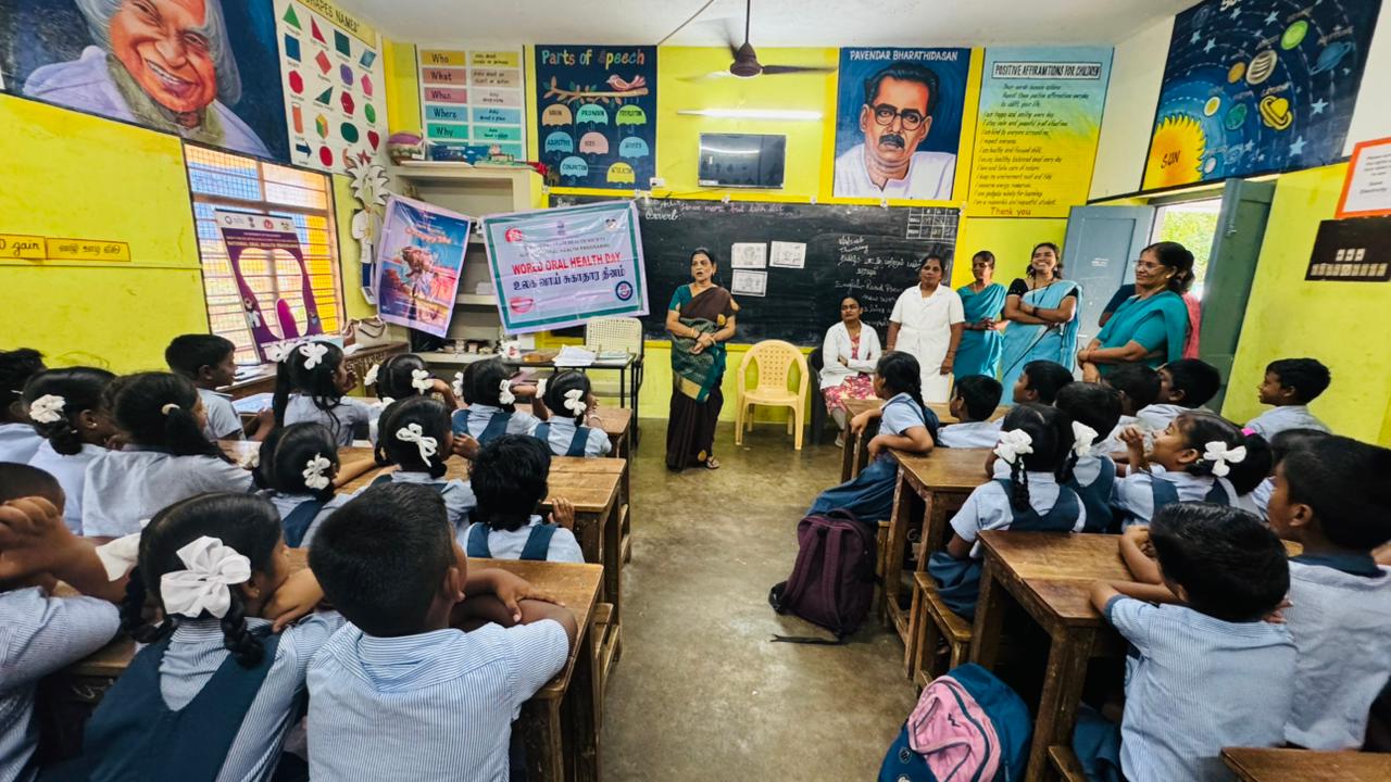 On behalf of World Oral Health Day 2026, an oral health awareness camp was conducted at Government Primary School, Kalapet Kuppam for students of 3rd, 4th, and 5th standards.