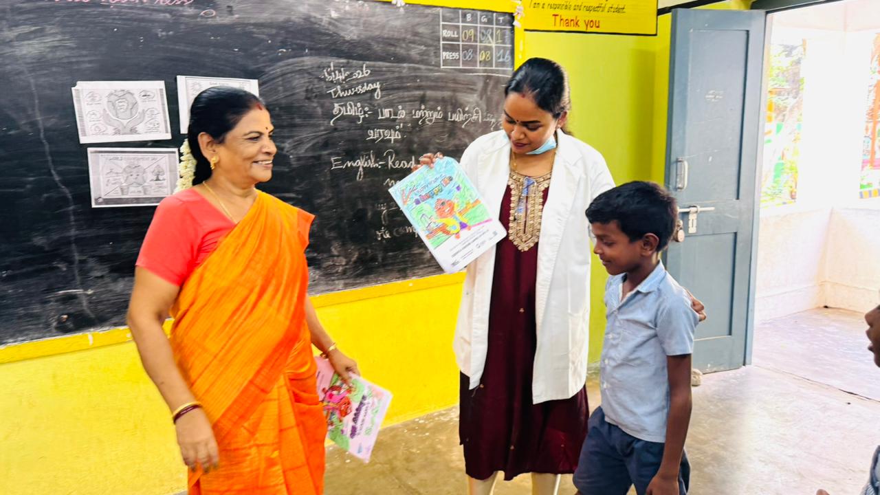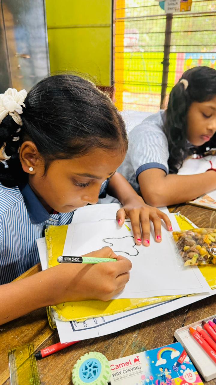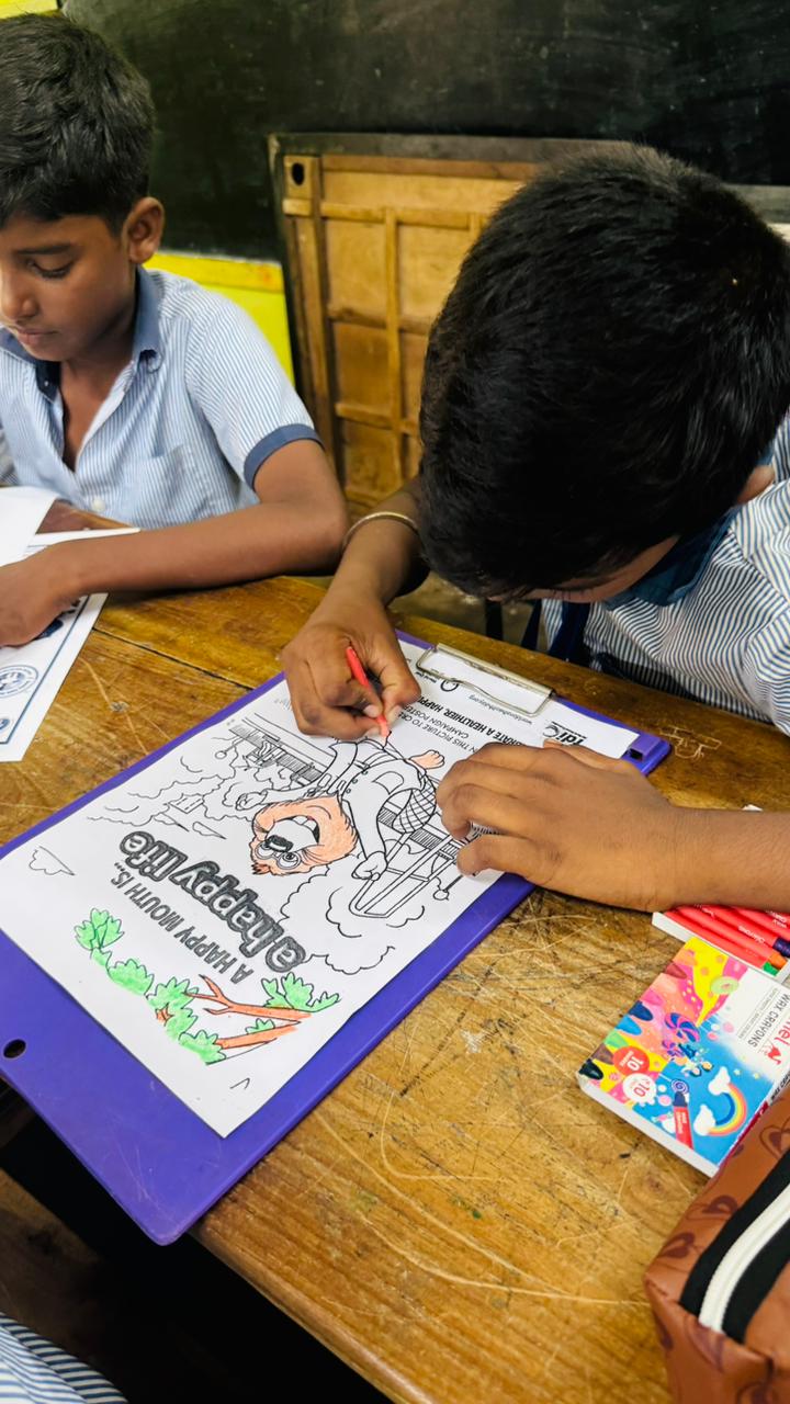 To promote creativity and awareness, drawing and colouring competitions were conducted based on the dental theme “Toothiee,” where students enthusiastically showcased their talents.Oral health pamphlets and posters were distributed to reinforce the awareness message.Total Beneficiaries: 48 students & Staff Participation: 4 teachers .