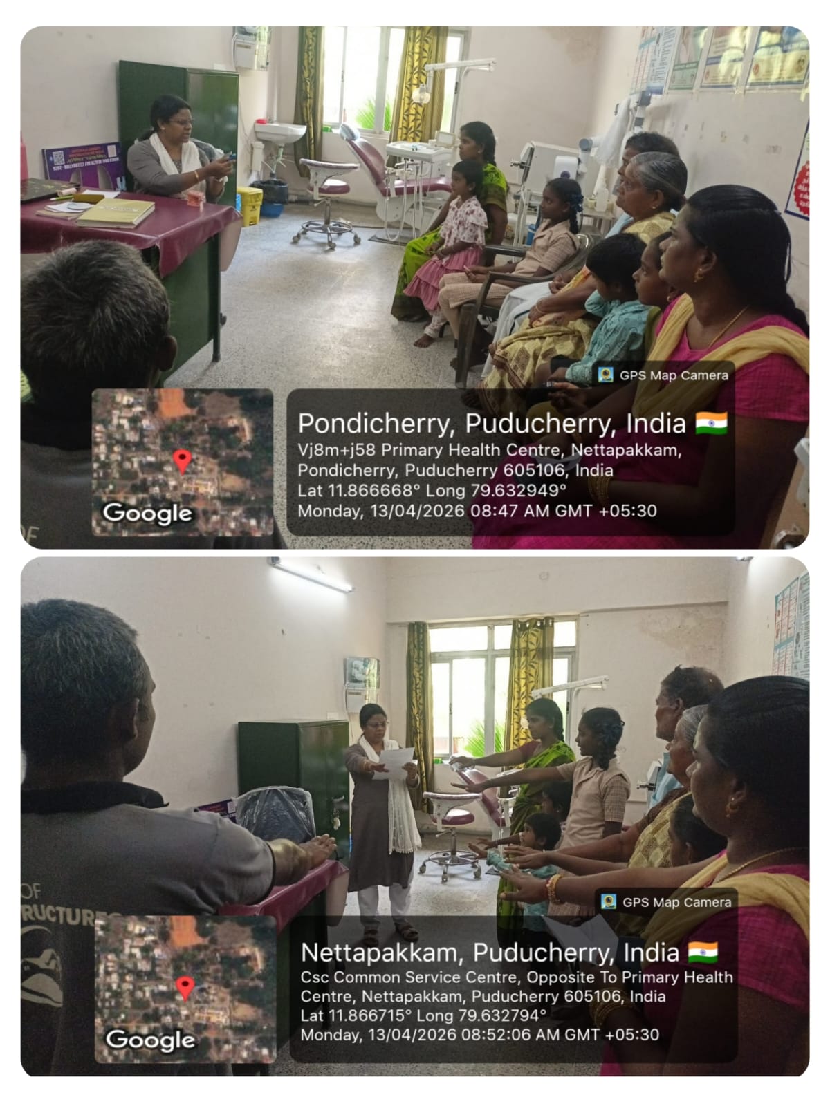 WOHD 2026 Celebration @ Dental OPD: Awareness given on Do's and don'ts in oral care. Harmful effects of Tobacco and its impact on health and society were highlighted. Role of TCC services and NRT gums availability at the health facility were emphasised. Brushing techniques were demonstrated using dental models and posters. Oral health pamphlets were distributed for routine dental hygiene practices and for future references. Oral hygiene pledge was taken. Beneficiaries: 20