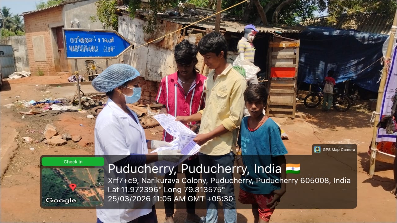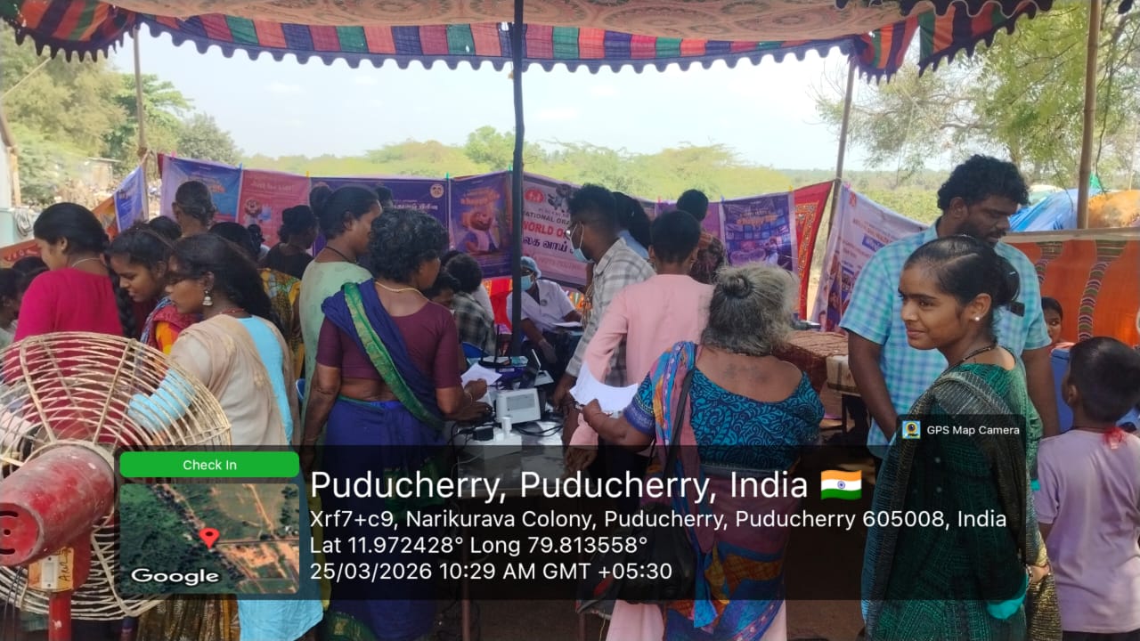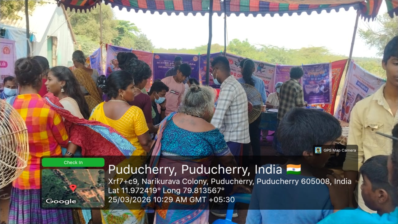 Nohp in collaboration with Ntcp organized a special camp for the tribal population at Narikuravarpet , Lawspet, Pondicherry 25/3/26.