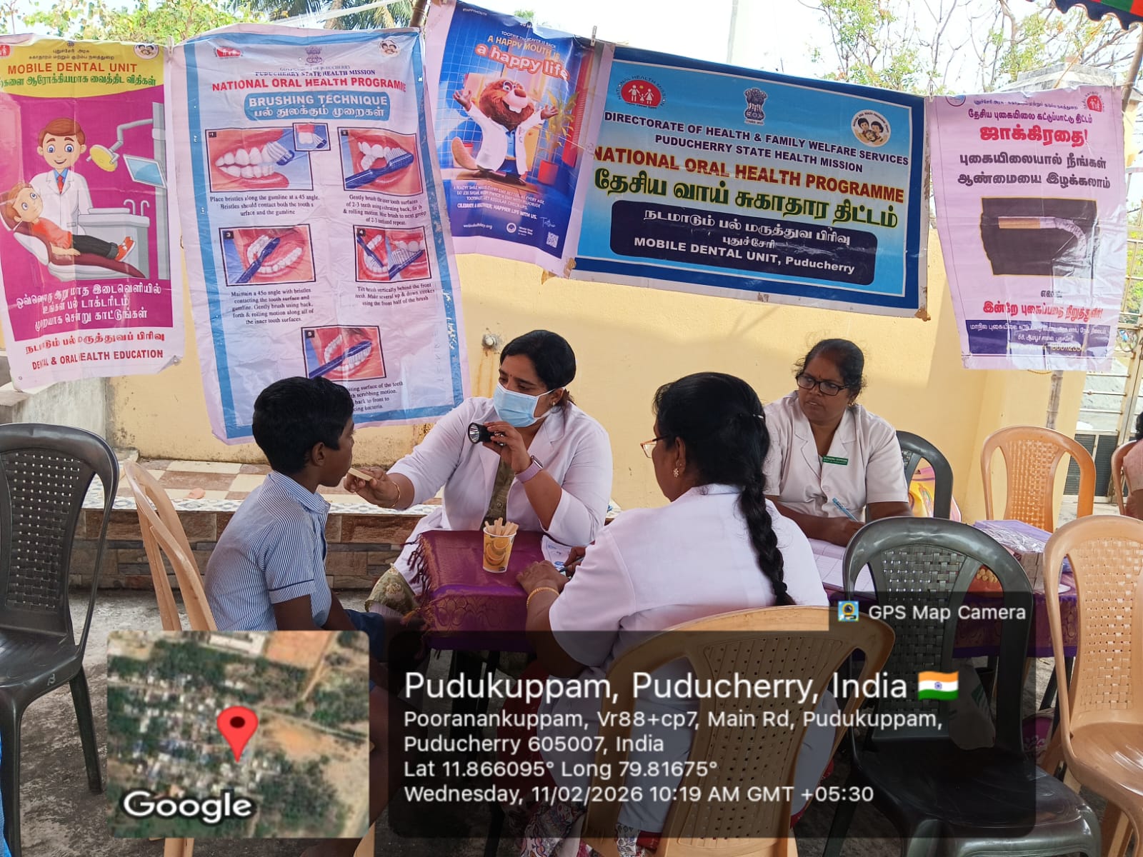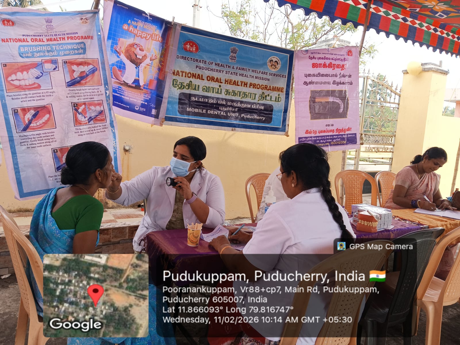 An *Oral Screening* and *Oral Awareness* Camp was successfully organized at *Poornankuppam* - temple in collaboration with the *Pondicherry AIDS Control Society (PACS)* and *National AIDS Control Organization (NACO).* The event formed part of an *Integrated Health Camp* held on February 11,2026 .