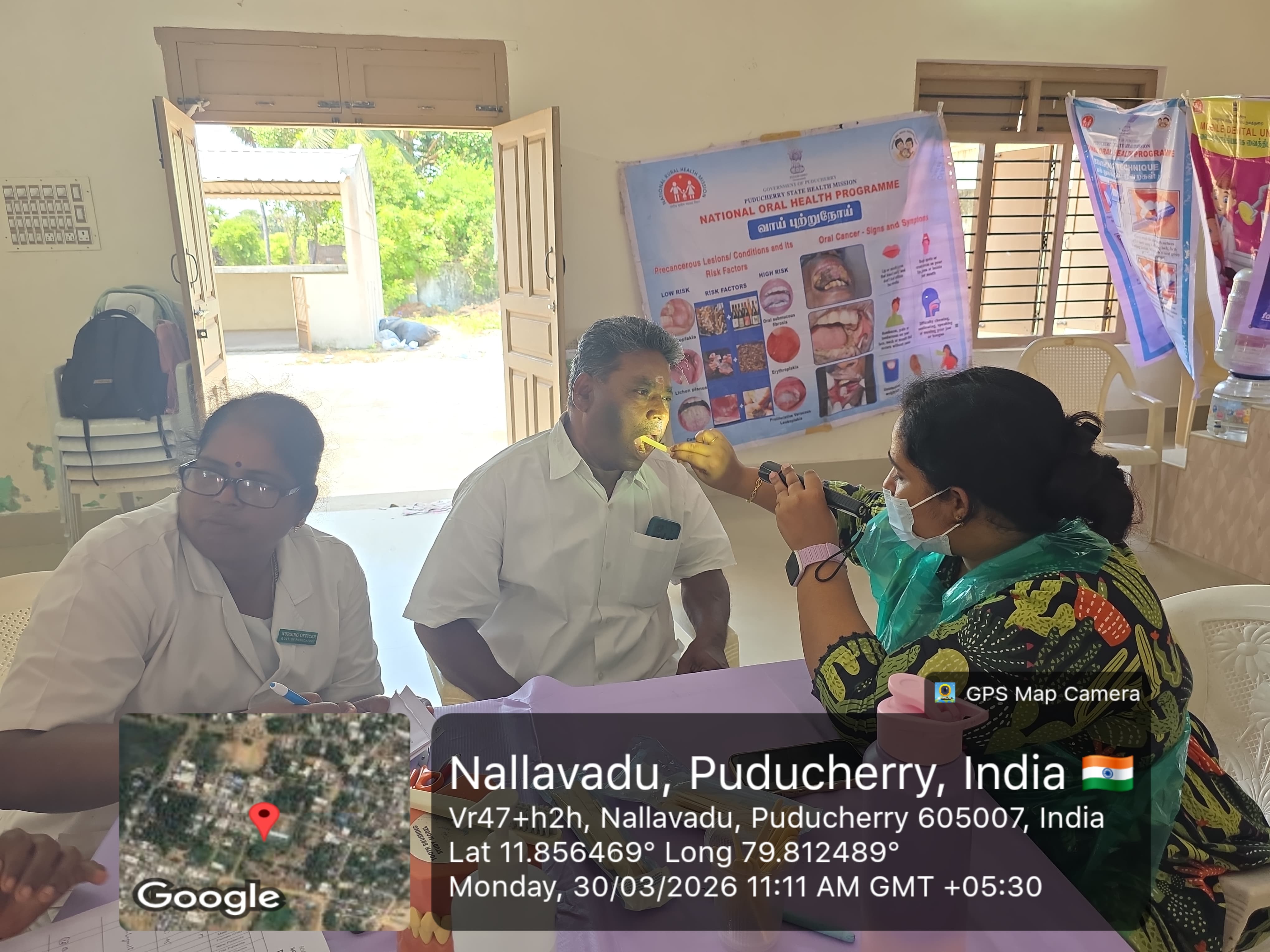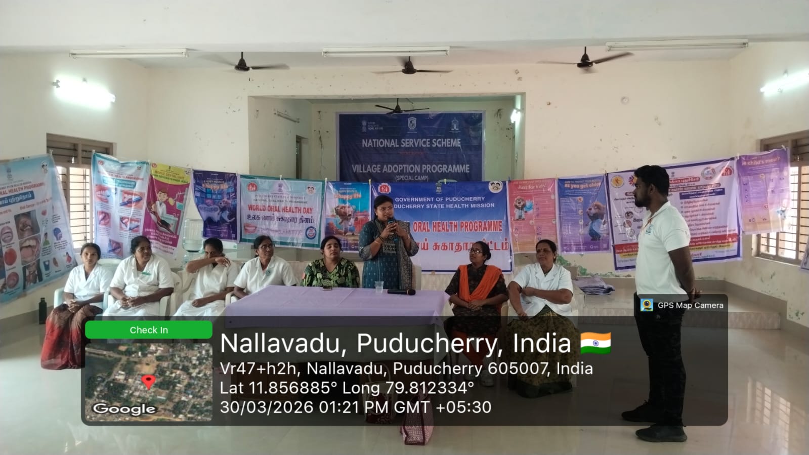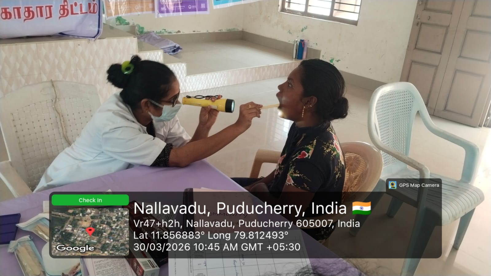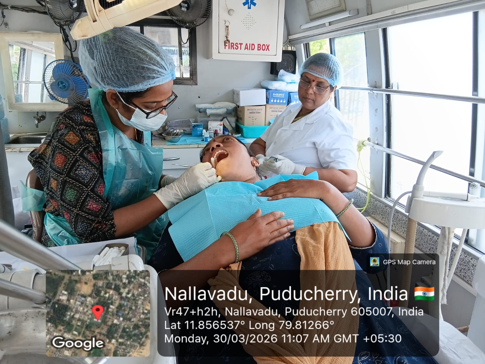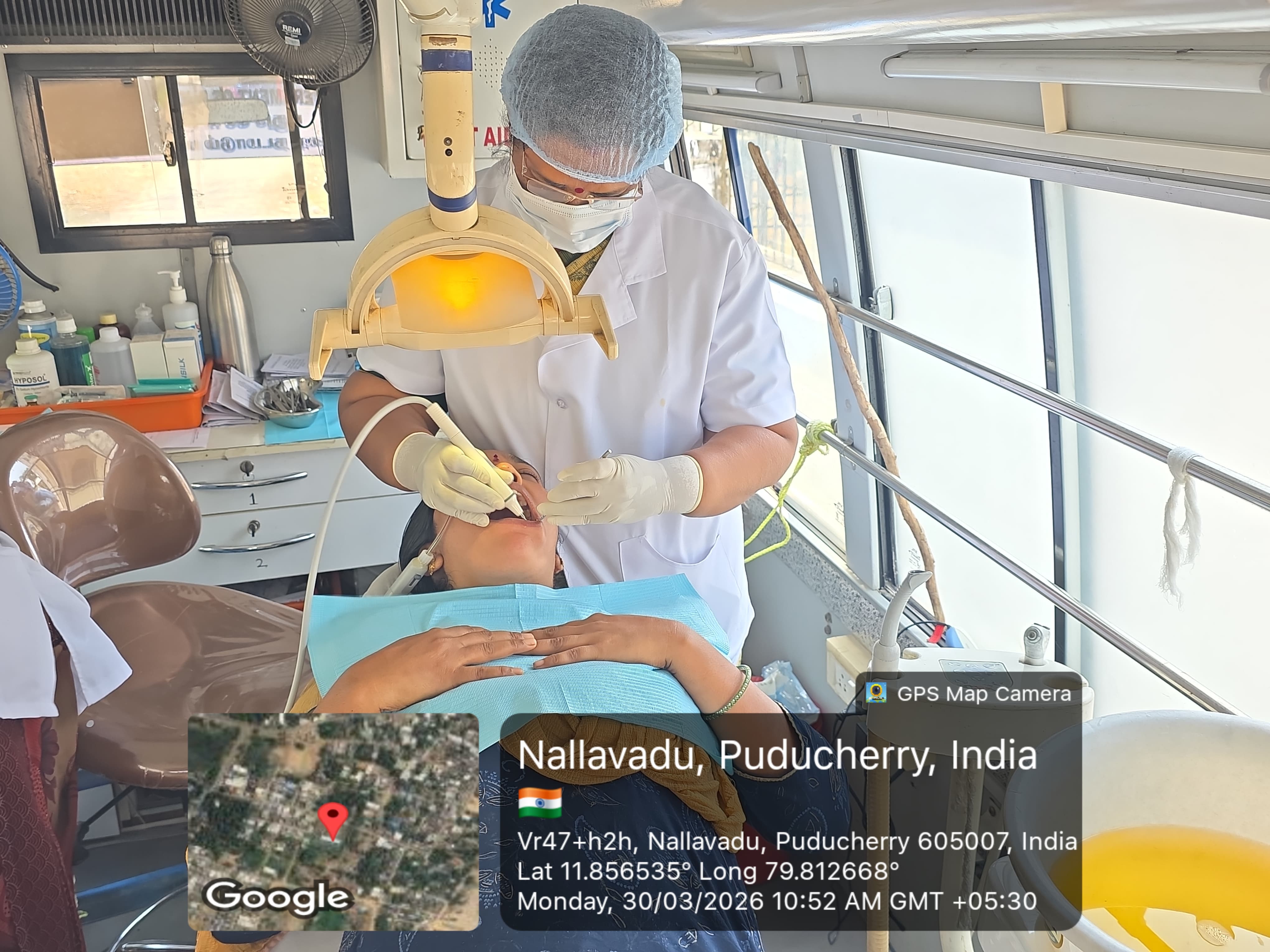On the occasion of *World Oral Health Day* and the *World TB Day 100 Days Campaign,* a special oral screening and treatment camp was successfully conducted for the general public at the Community Hall, *Nallavadu* , in collaboration with the NSS team of *RR University,* Murungapakkam Campus on 30/03/2026.