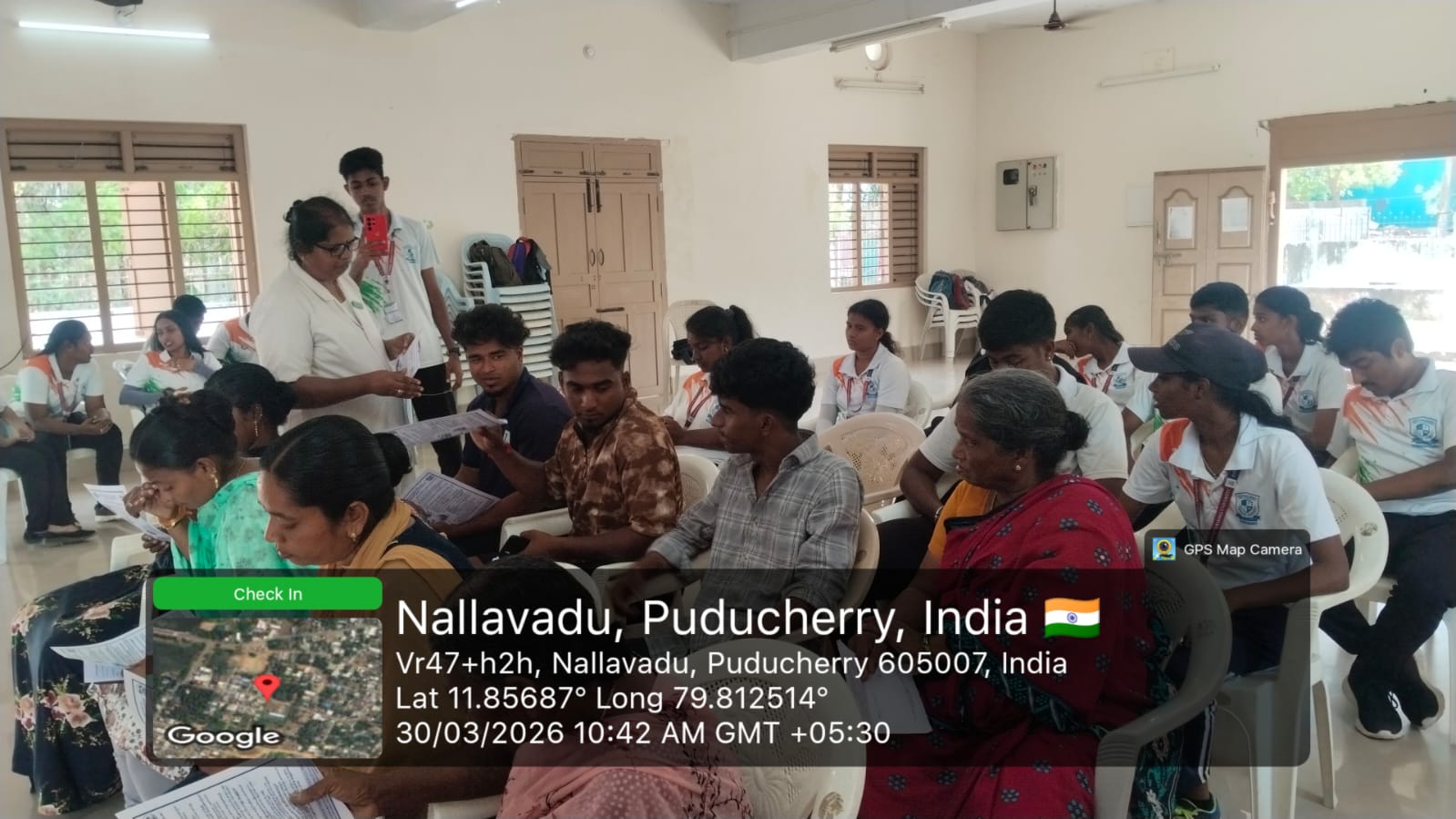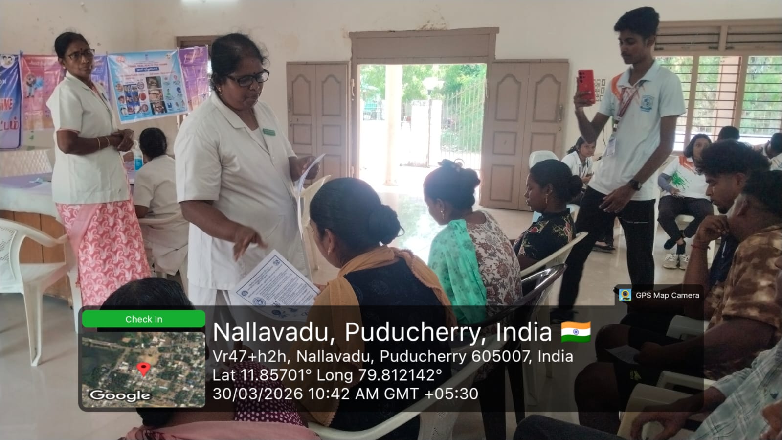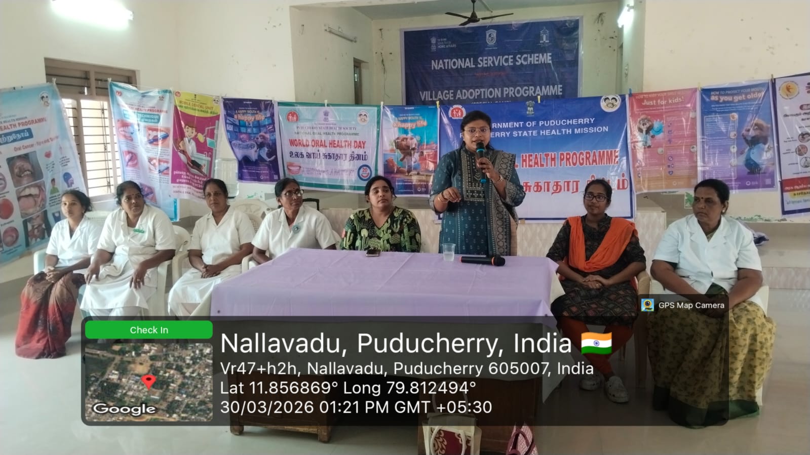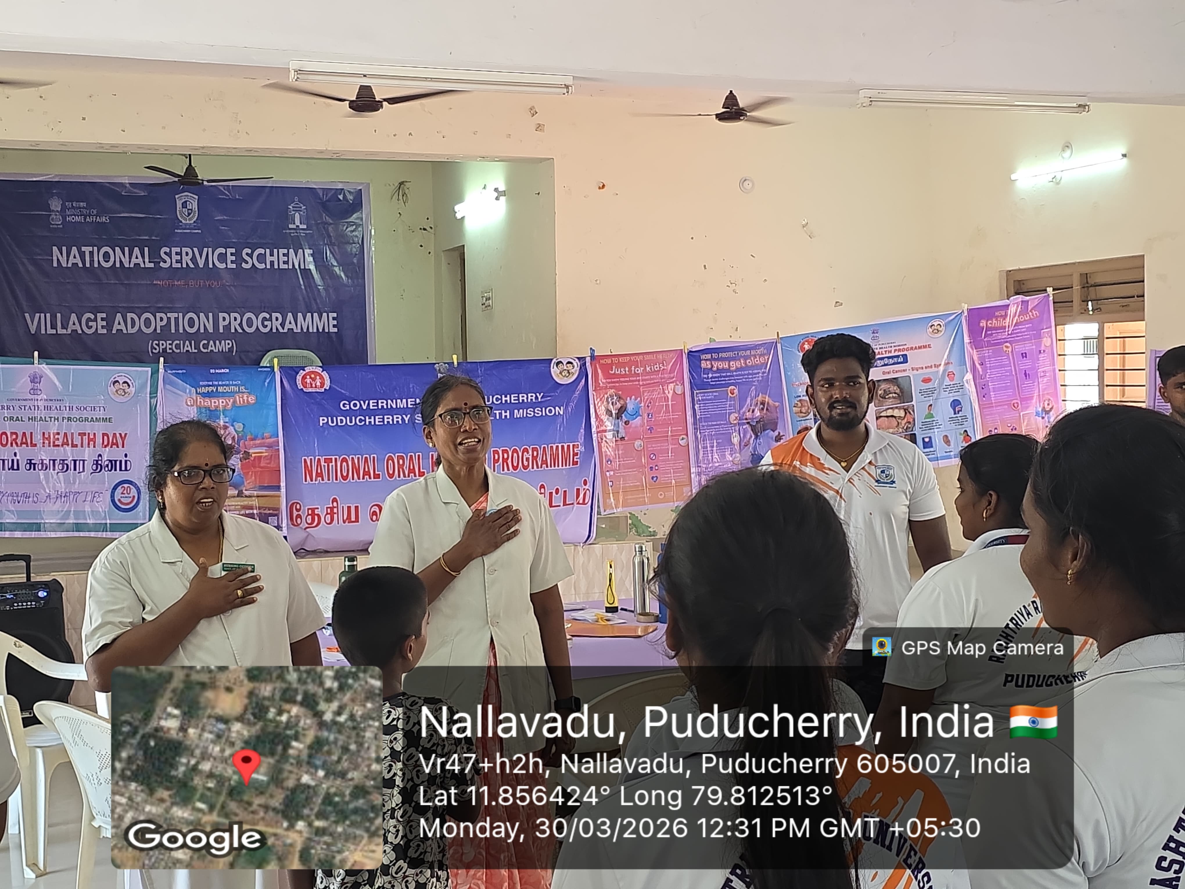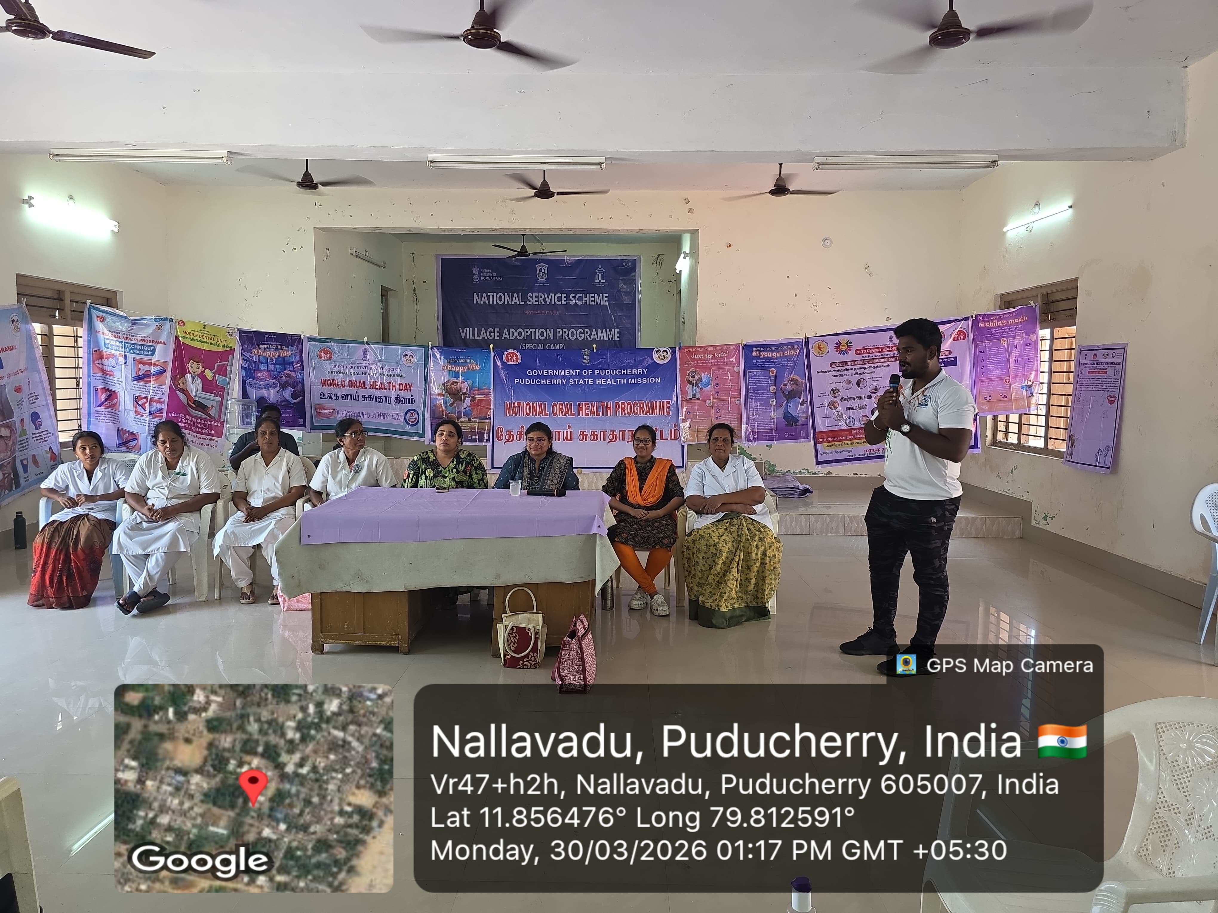 On the occasion of *World Oral Health Day* and the *World TB Day 100 Days Campaign,* a special oral screening and treatment camp was successfully conducted for the general public at the Community Hall, *Nallavadu* , in collaboration with the NSS team of *RR University,* Murungapakkam Campus on 30/03/2026.