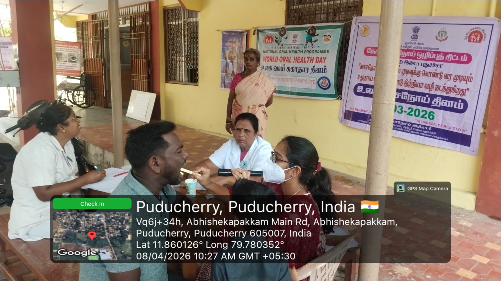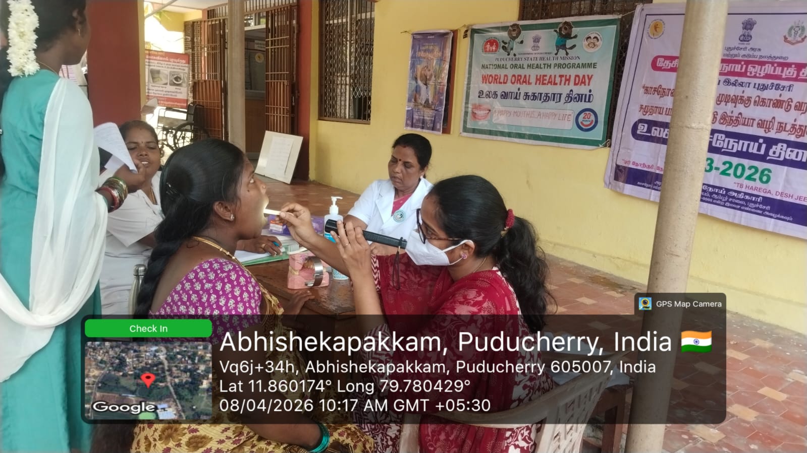 On 08.04.2026, an oral health awareness and screening camp was successfully conducted for antenatal *(ANC)* mothers AAM - PHC Abhishegapakkam. The program aimed to promote the importance of maintaining good oral hygiene during pregnancy and its impact on overall health. A detailed awareness session was delivered, highlighting proper oral care practices, common dental problems during pregnancy, and preventive measures.