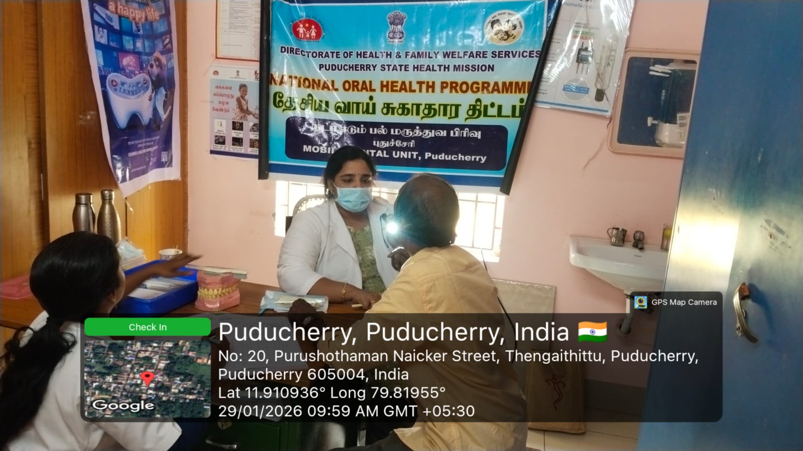 An oral screening and treatment camp was conducted at *AAM - USHC Thengaithittu* on 29-01-2026 with the objective of promoting oral health and providing essential dental services to the community. The program focused on early detection of oral diseases through systematic oral screening of the general public. Necessary basic treatments were provided, and individuals requiring further care were referred for specialized dental services.