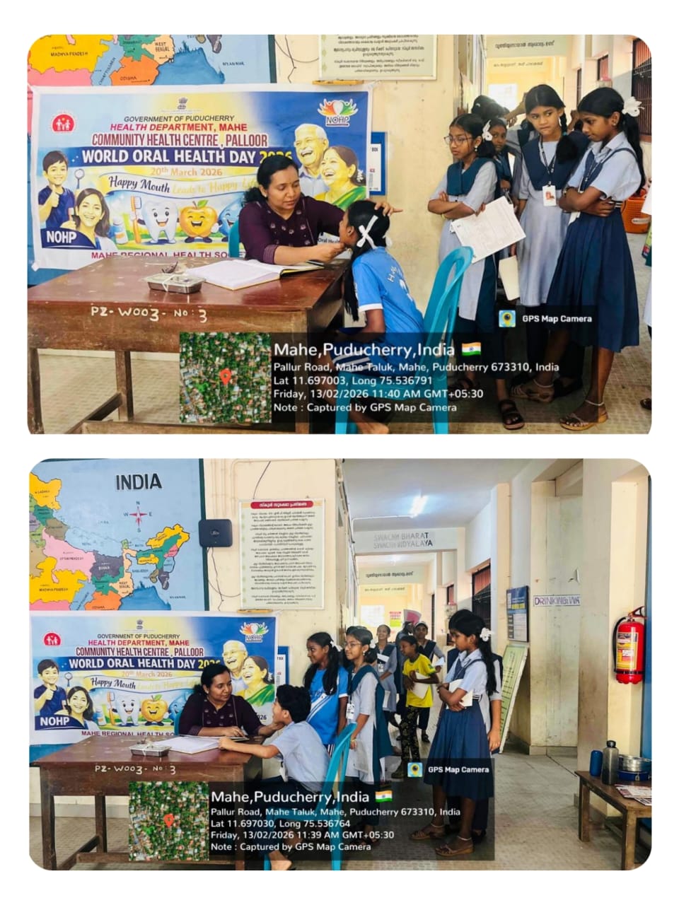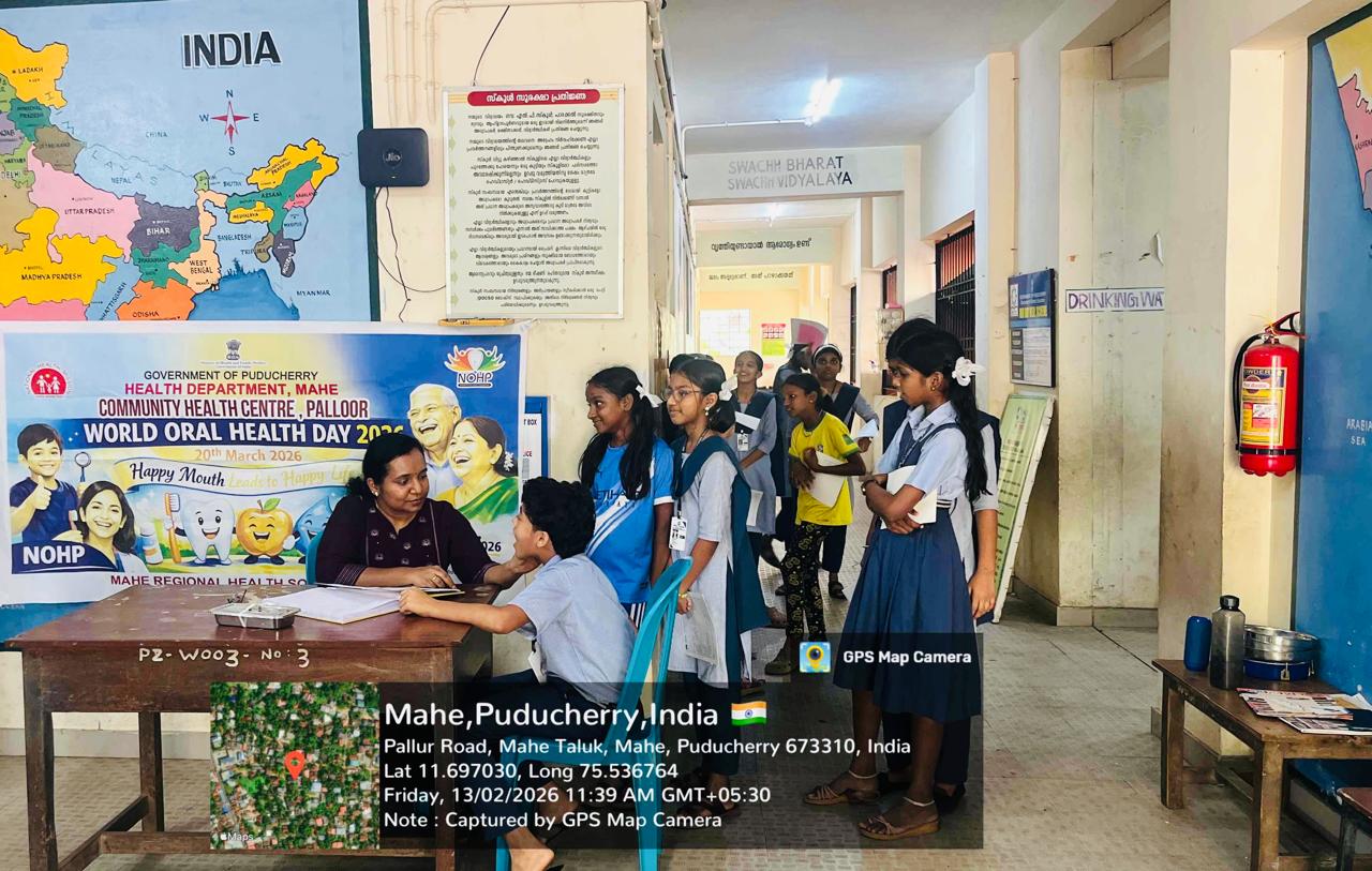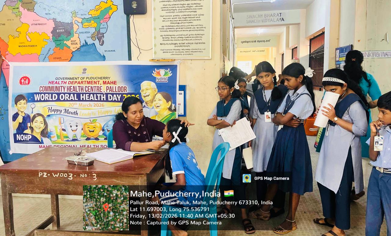 On 13/02/2026, an oral health screening camp was conducted for 5th standard students at GLPS, Parakkal, located in Mahe. The screening aimed to assess the dental health status of schoolchildren and to identify common oral problems at an early stage. A total of 25 students were examined, including 10 boys and 15 girls. During the screening, several students were found to have dental issues such as tooth decay, plaque accumulation, and poor oral hygiene. These students were advised on proper brushing techniques, healthy dietary habits, and the importance of maintaining oral cleanliness. Those requiring further care were referred to CHC Palloor for detailed evaluation and treatment. The program helped create awareness among children about oral hygiene and emphasized the need for regular dental check-ups to prevent future complications.