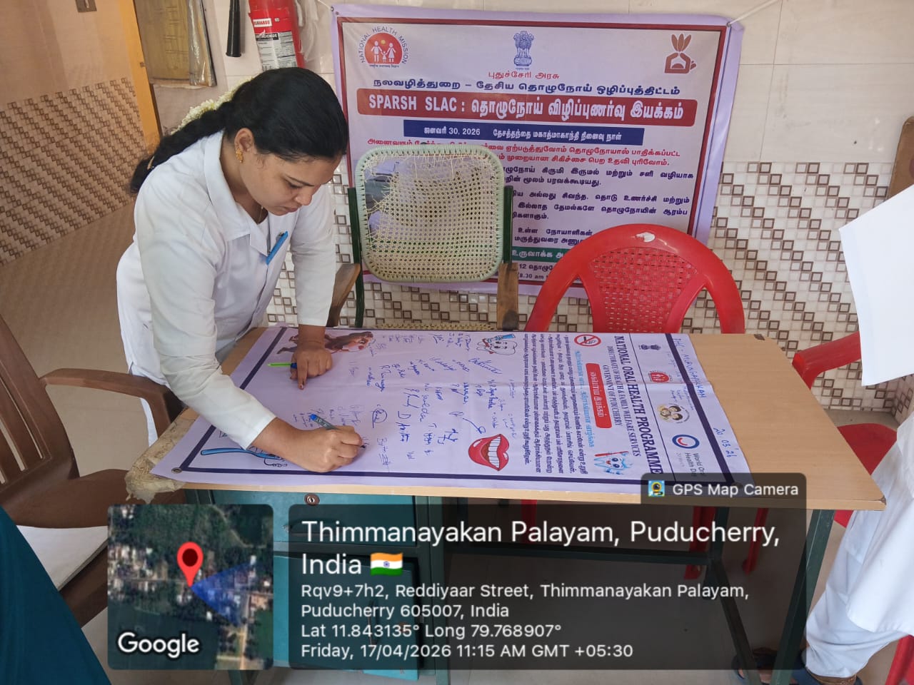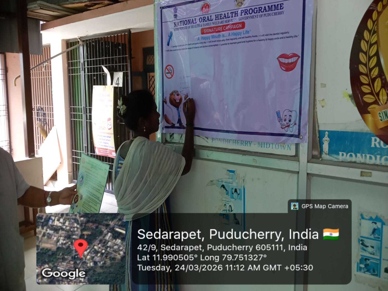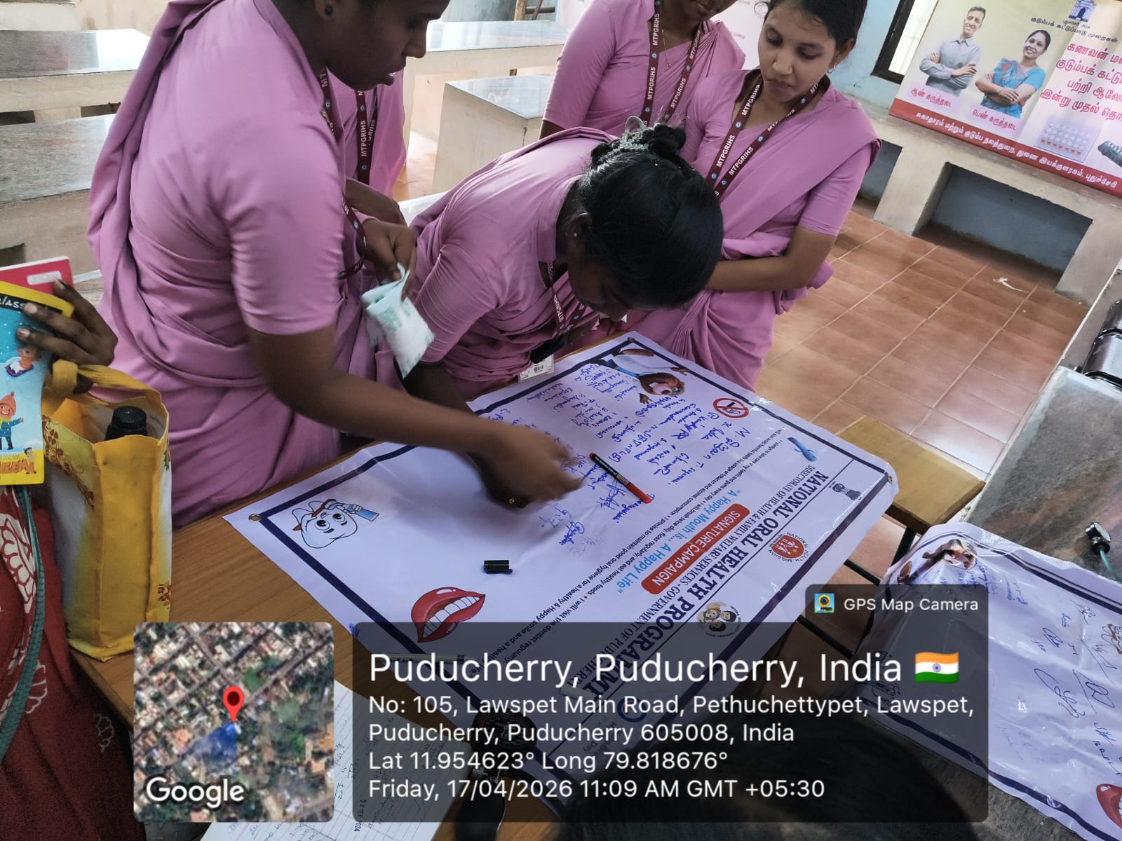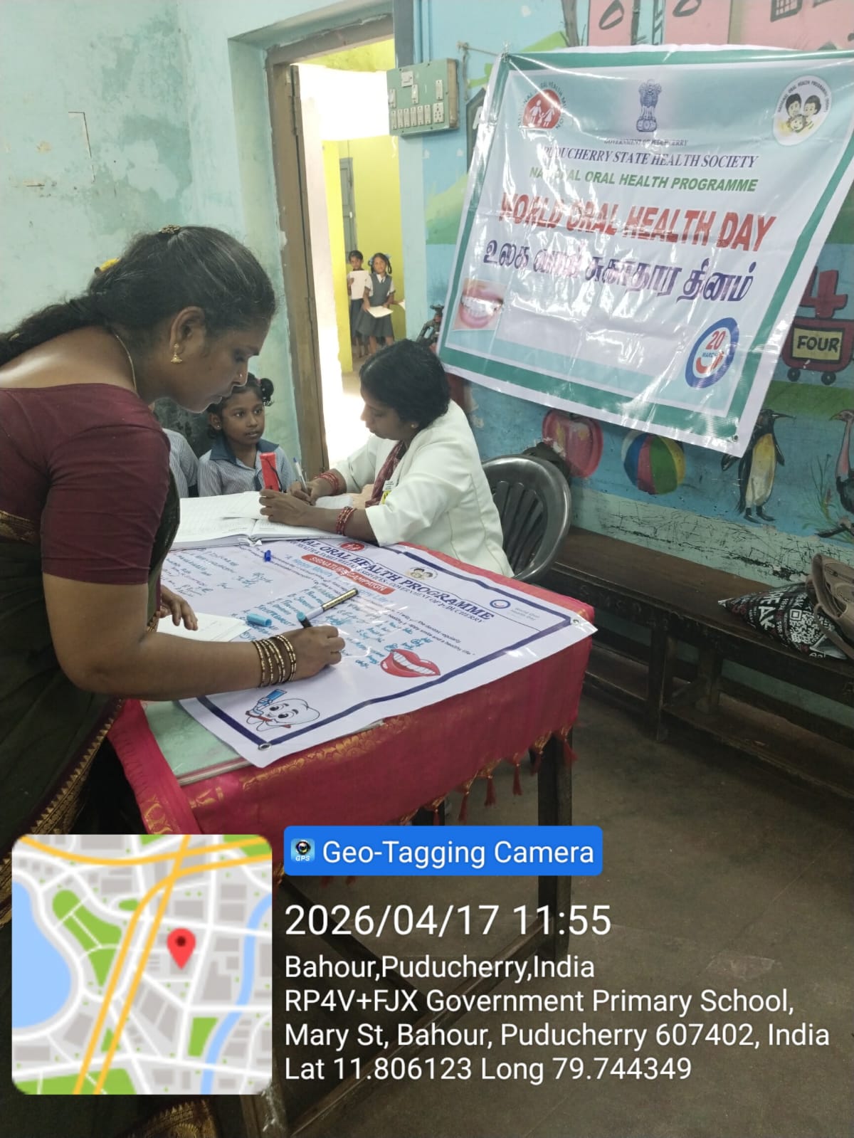 On behalf of the World Oral Health Day 2026 celebrations, *a special month-long signature campaign* was conducted from _March 20 to April 20_ based on the theme “ *A Happy Mouth is… A Happy Life.”* A well-designed banner featuring the oral health pledge was prepared and displayed at various locations to attract public participation. The campaign was carried out across organizations, educational institutions including schools, and Health and Wellness Centres, as well as public places such as Rock Beach.