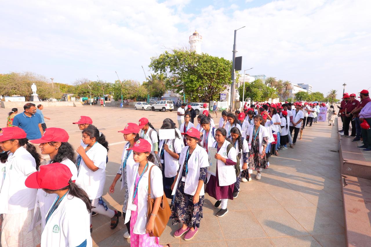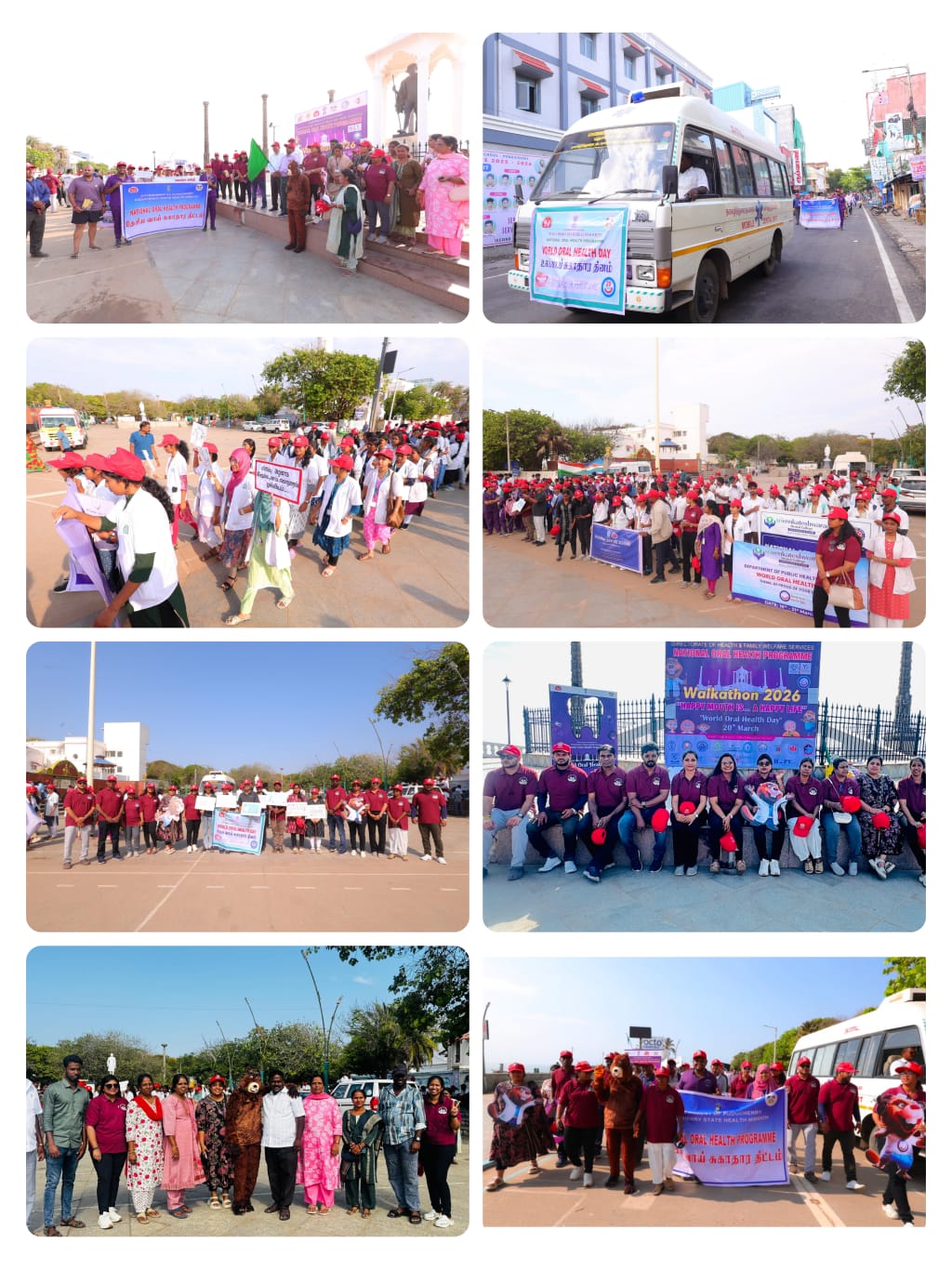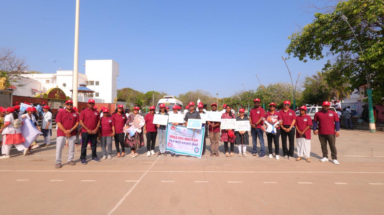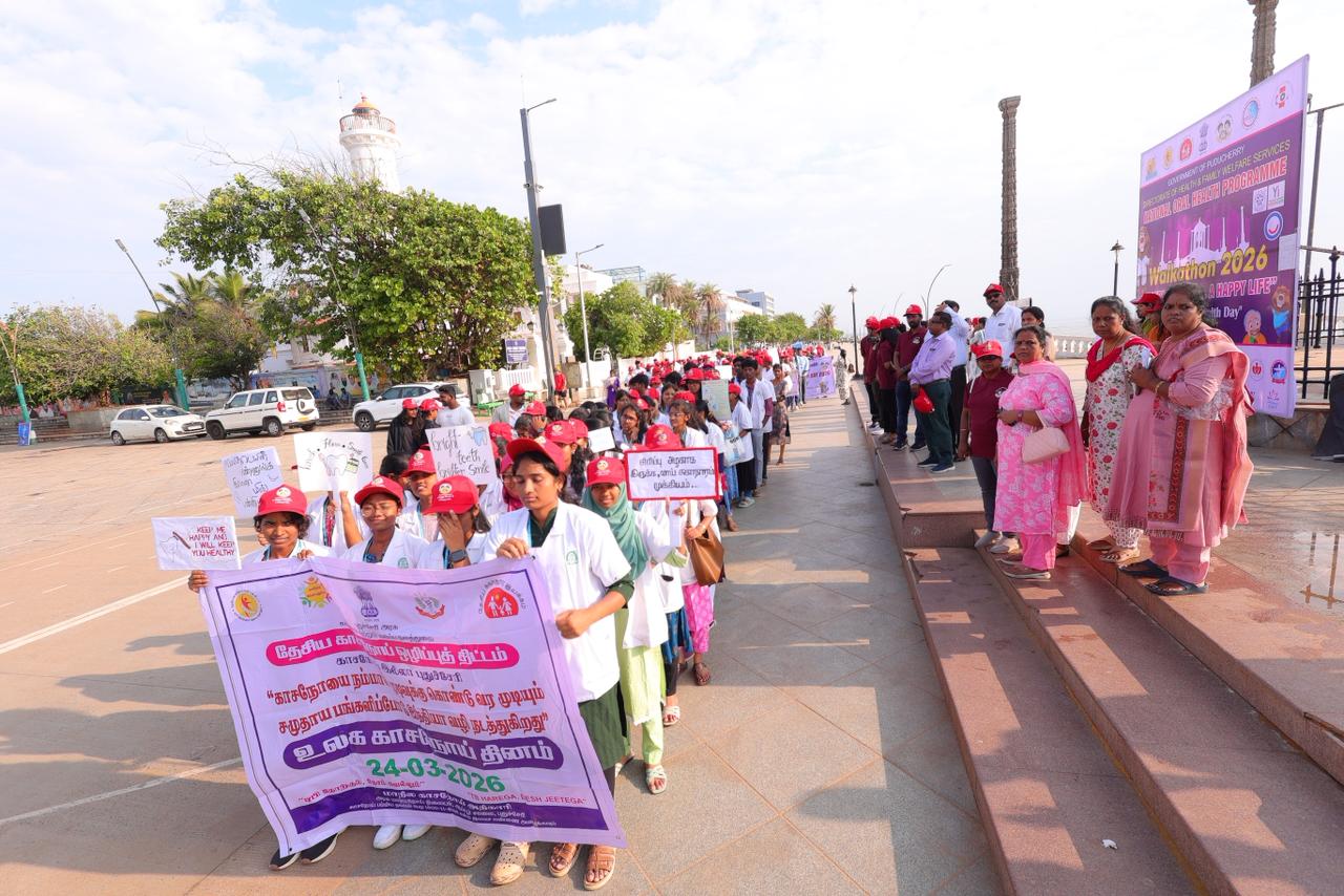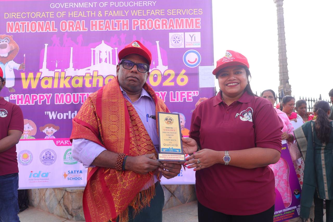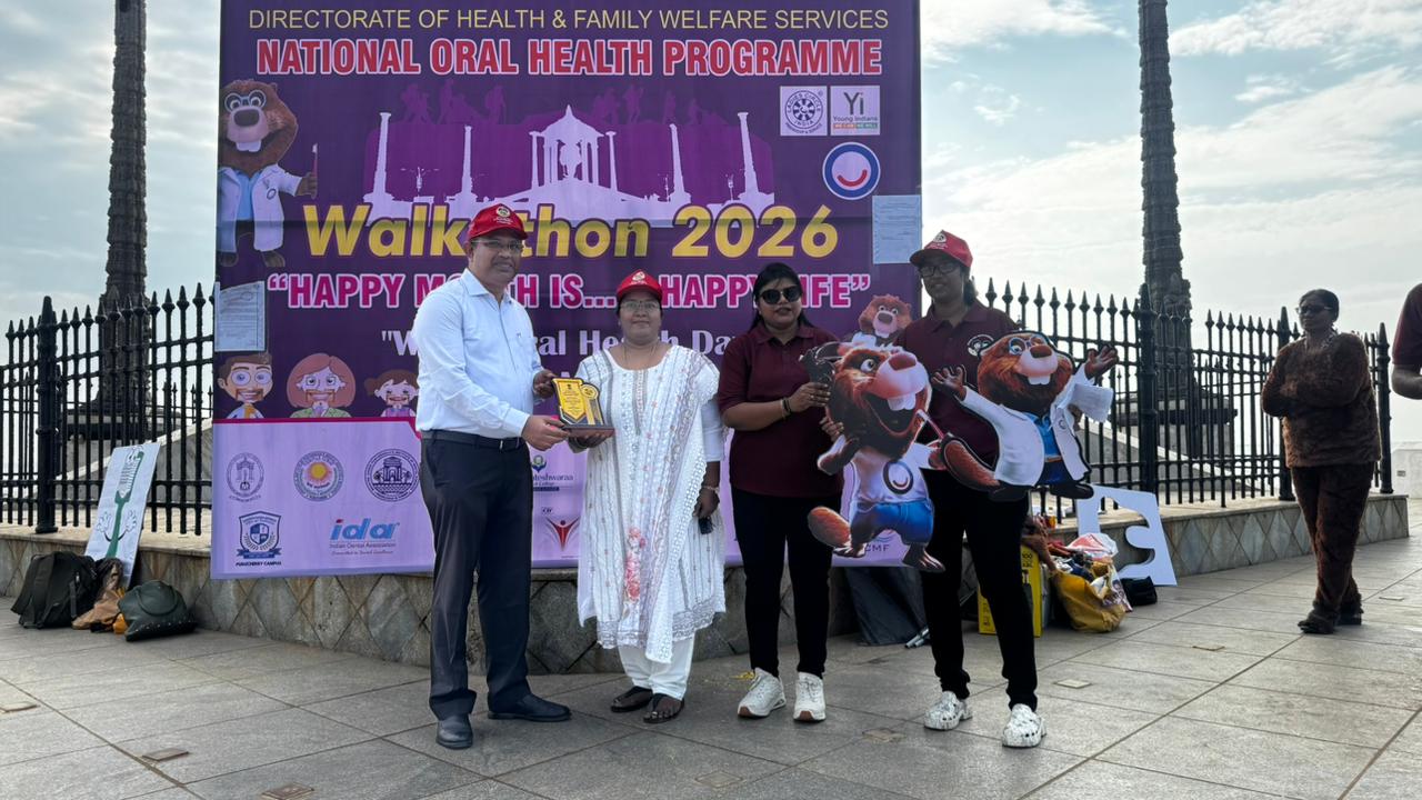 On the occasion of World Oral Health Day on March 20, an oral health awareness walkathon was conducted on March 19 under the National Oral Health Programme with the theme “A Happy Mouth is… A Happy Life.” The walkathon commenced from the Gandhi statue at Puducherry Beach and was flagged off at 8am by the Director of Health Services, Dr. Sevvel.