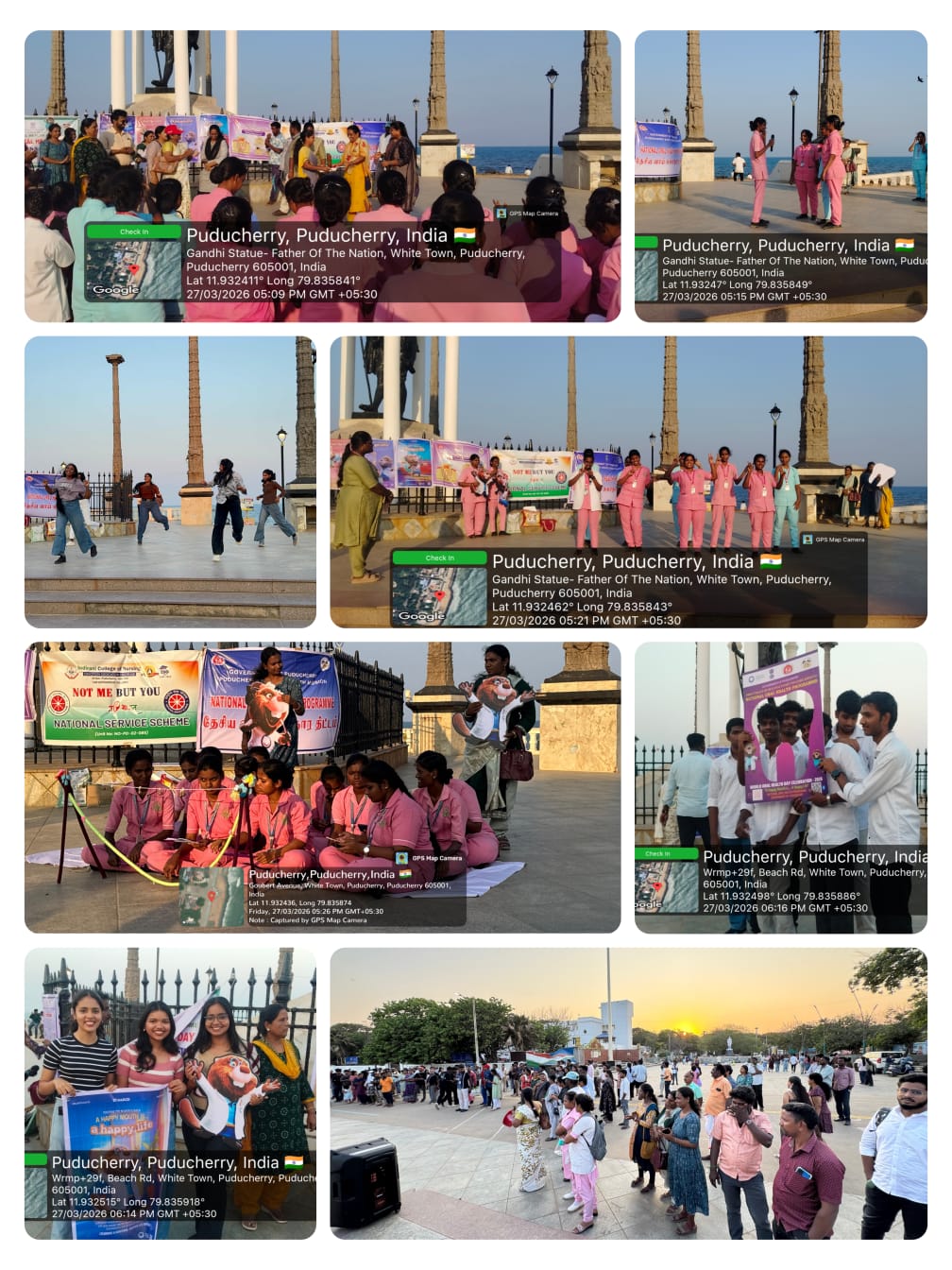 Nohp in collaboration with college students of Venkateshwara dental college, Rashtriya Raksha university and Indrani college of nursing conducted an active flashmob at Rock Beach Pondicherry on 27/3/26.