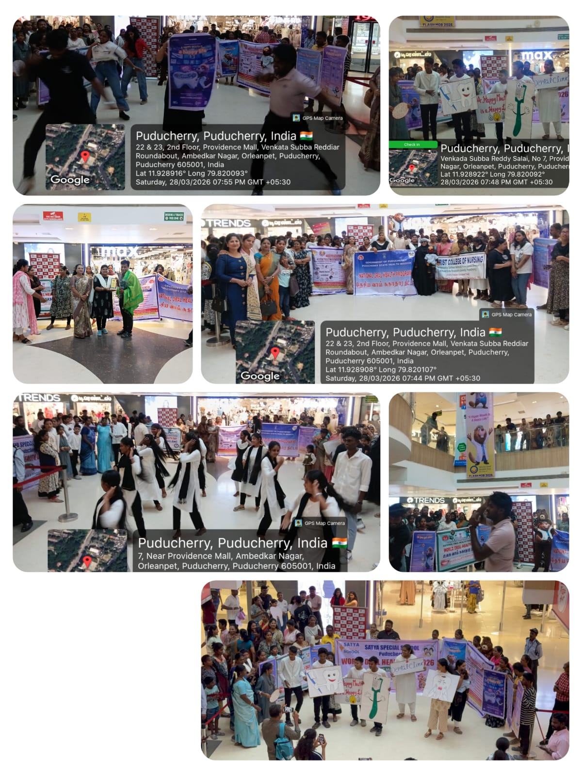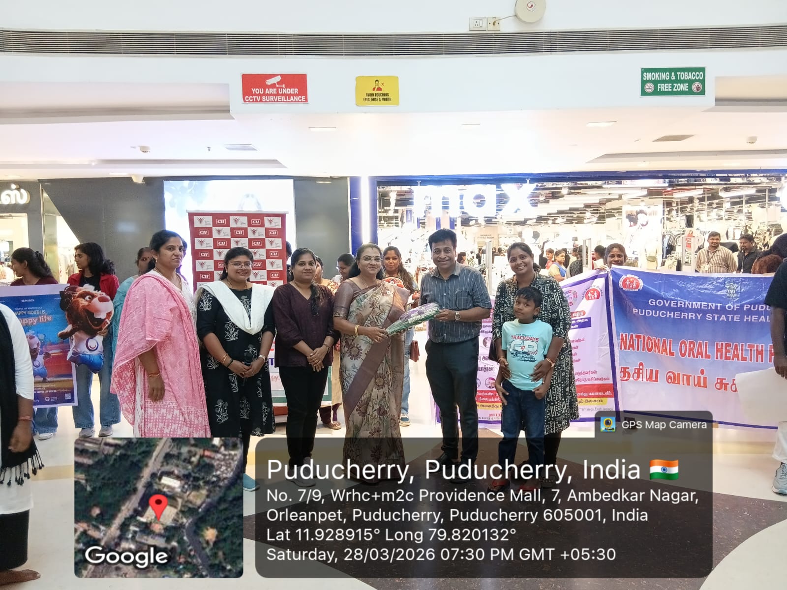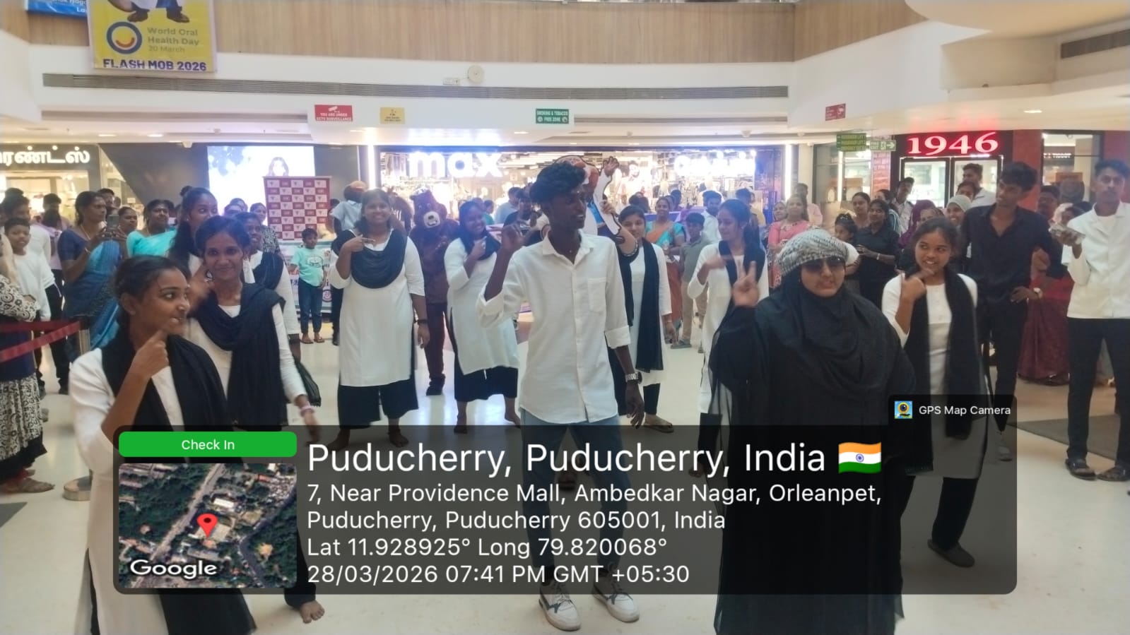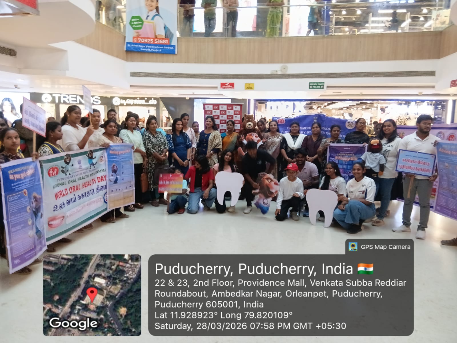 A dental awareness _banner drop_ was organized at a prominent shopping mall as part of the *World Oral Health Day* celebration, aiming to spread awareness about the importance of maintaining good oral hygiene among the general public on 28/03/2026 evening.