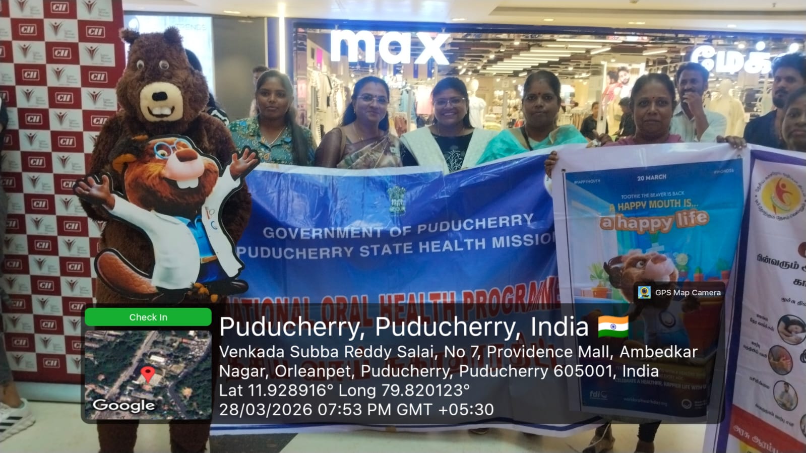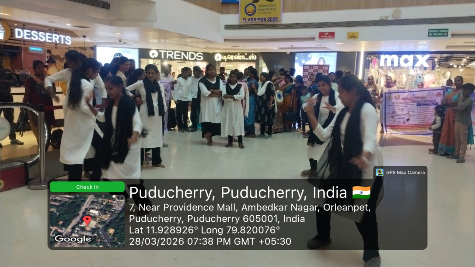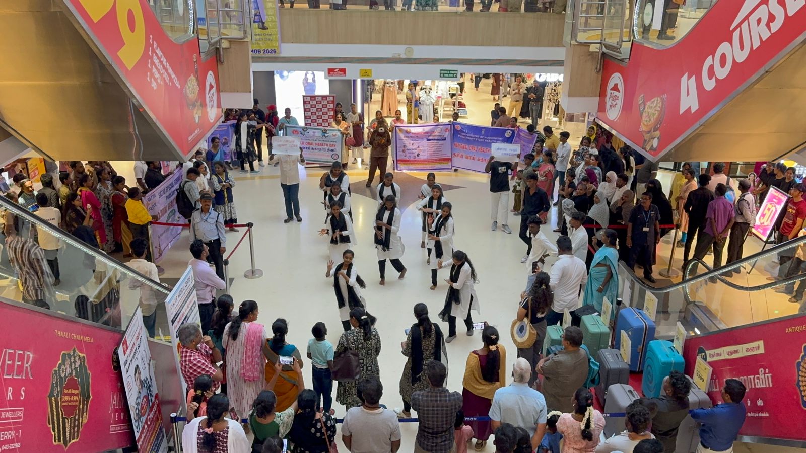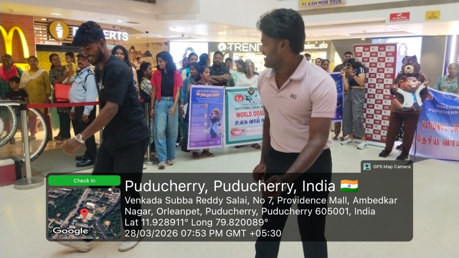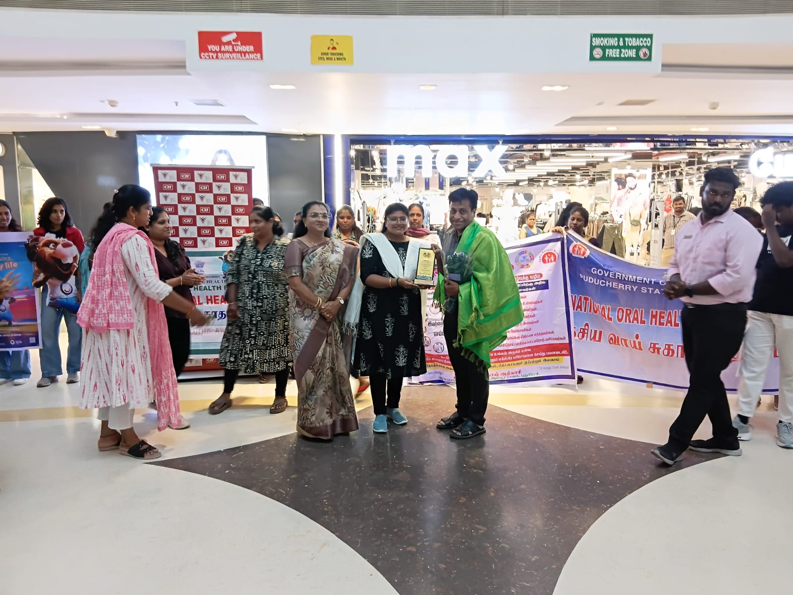 A dental awareness _banner drop_ was organized at a prominent shopping mall as part of the *World Oral Health Day* celebration, aiming to spread awareness about the importance of maintaining good oral hygiene among the general public on 28/03/2026 evening.