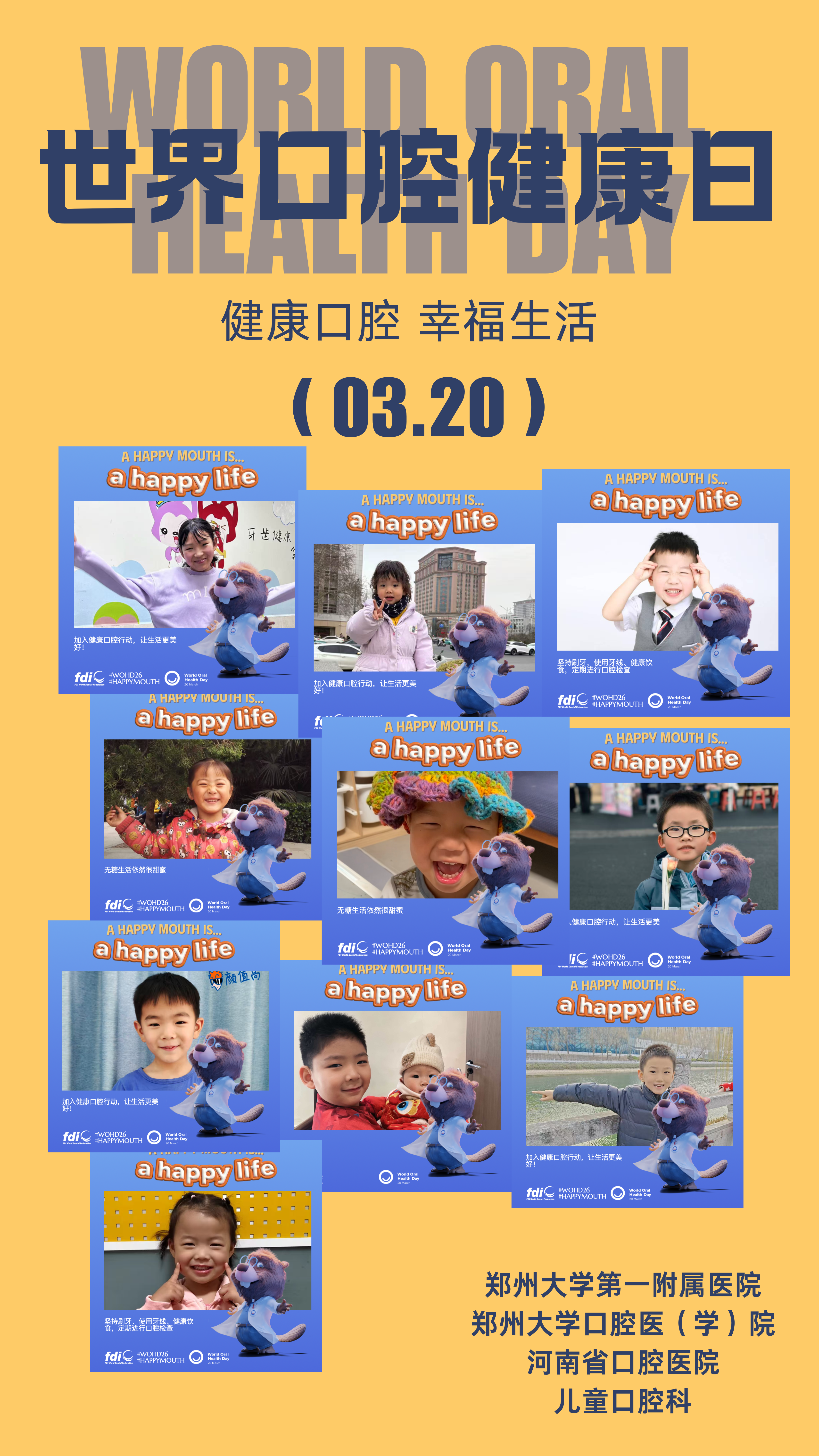 To celebrate World Oral Health Day on March 20, 2026, in response to the theme of "Healthy Mouth, Happy Life", the Pediatric Dentistry Department of the First Affiliated Hospital of Zhengzhou University organized a series of activities. The details are as follows: 1. Post and share the theme posters; 2. Learn and distribute the relevant oral health care leaflets for children offline; 3. Share the materials through social media for online promotion; 4. Create personalized "World Oral Health Day" posters and share them; 5. Conduct popular science lectures on oral health care knowledge such as the correct way to brush teeth and the use of dental floss; 6. Organize a quiz related to oral health knowledge; 7. Conduct a painting competition on the theme of "Healthy Mouth, Happy Life"; 8. Go to schools to hold a knowledge lecture titled "Get Away, Little Tooth Decay"; 9. Organize an oral health day free medical consultation activity.