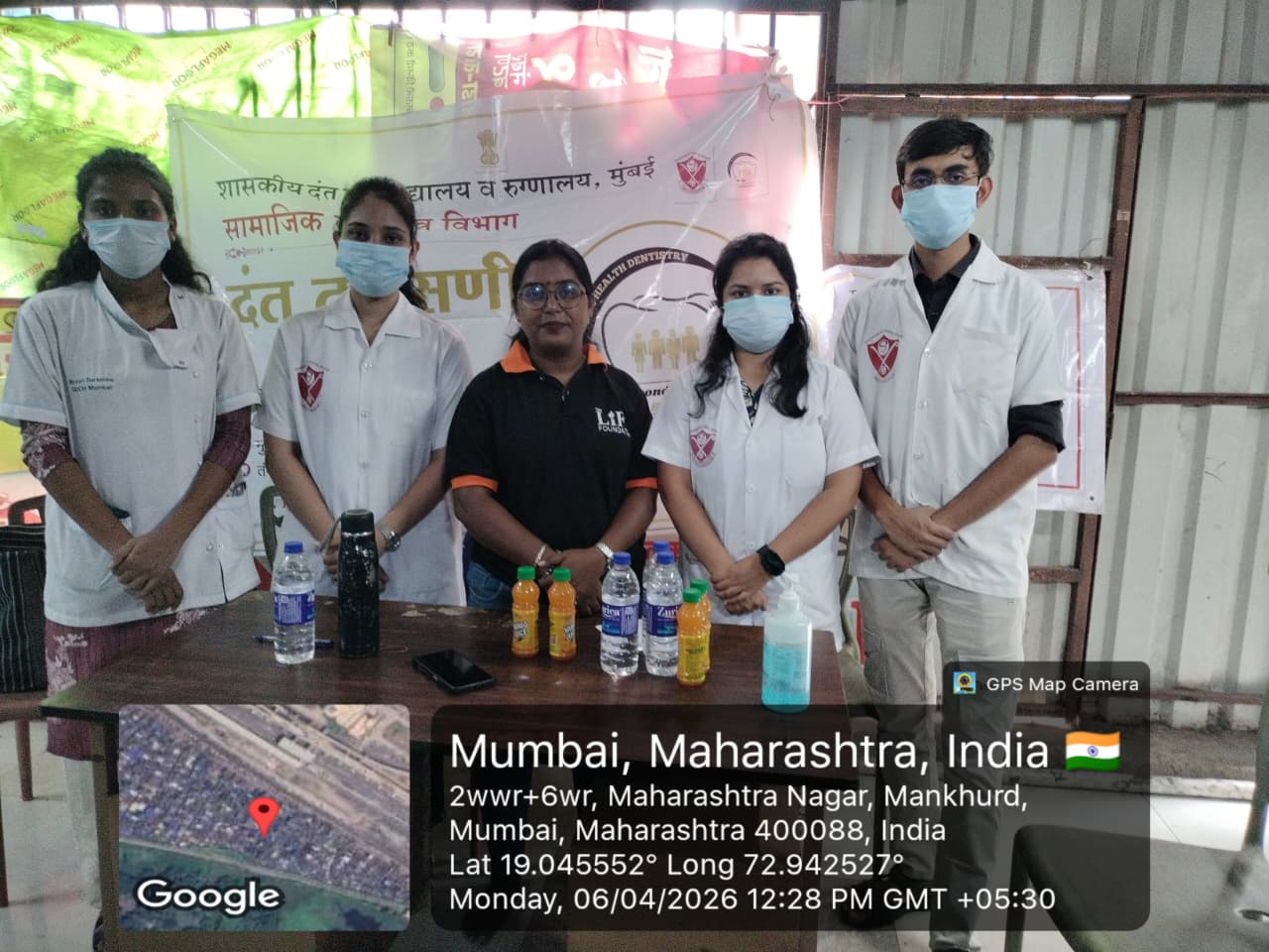 Community-based oral health initiatives play a vital role in early detection, prevention, and awareness of oral diseases, especially in underserved populations. Bhim Nagar, Mankhurd (E), represents a community where access to preventive oral healthcare and awareness remains limited. This camp was conducted to bridge this gap by delivering essential oral healthcare services and promoting self-care practices.
