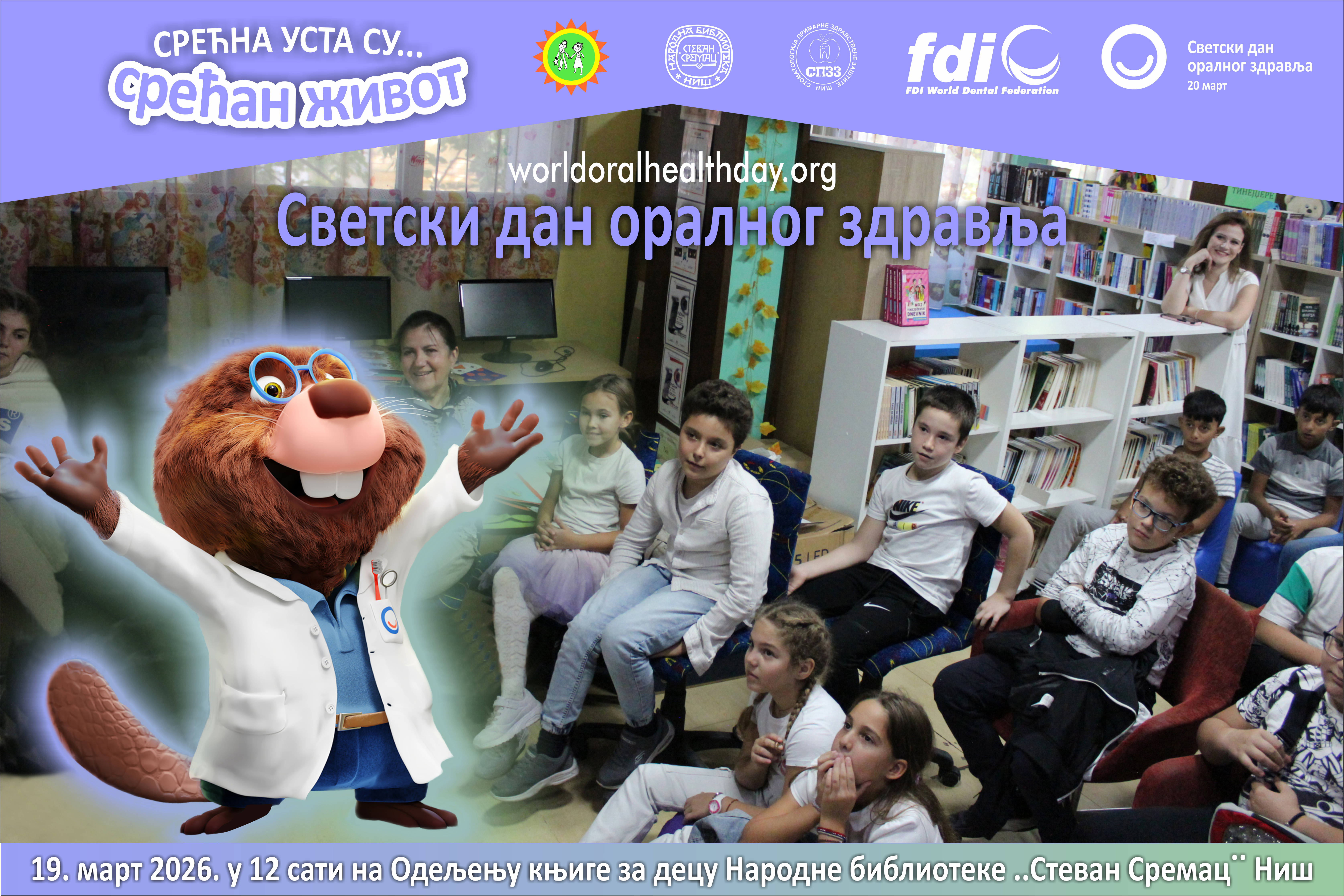 Since September 2025, Dentistry of Primary Health Care has been participating in the FDI campaign A Happy Mouth Is a Happy Life through continuous educational activities to promote oral health in kindergartens, primary and secondary schools. This year, Dentistry of Primary Health Care celebrated World Oral Health Day on March 19th at the City Library of Niš. The celebration was attended by members of the association and selected children from kindergartens and schools with their educators and teachers.