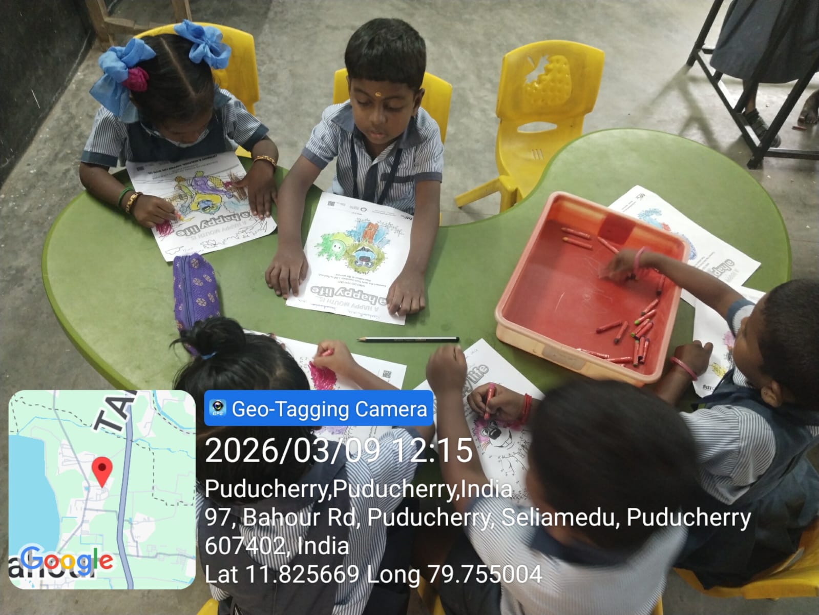 AAM Bahour World Oral Health Day 2026 celebrations, Drawing and colouring competition_ was conducted at GPS Seliyamedu pet on 9/03/26.The theme Happy Mouth is a Happy Life the colouring competition, expressing their ideas on good oral hygiene practices. A special oral health awareness talk was also delivered to students and teachers, emphasizing proper brushing techniques, healthy eating habits, and the importance of regular dental check-ups. Around 20 students from pre primary and class I participated. The program was organised by AAM Bahour