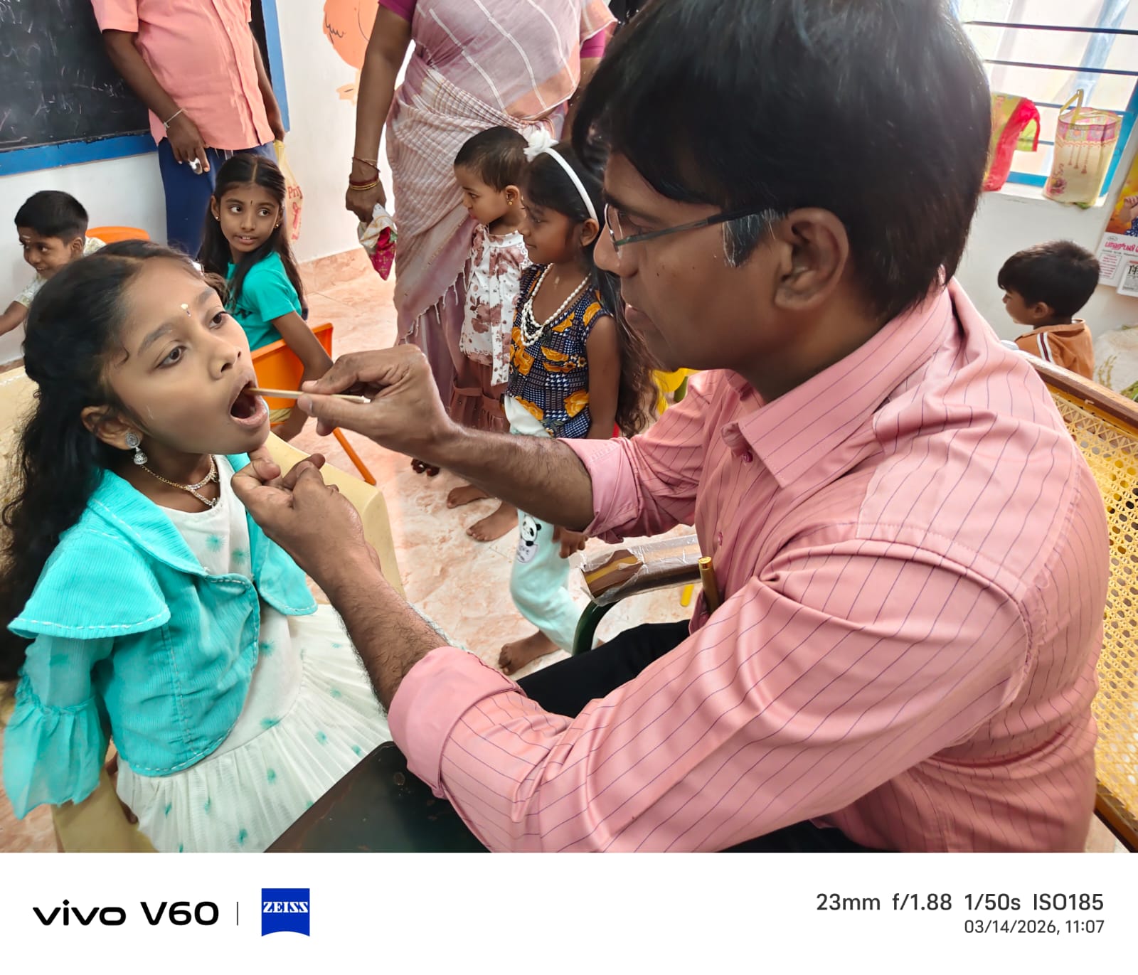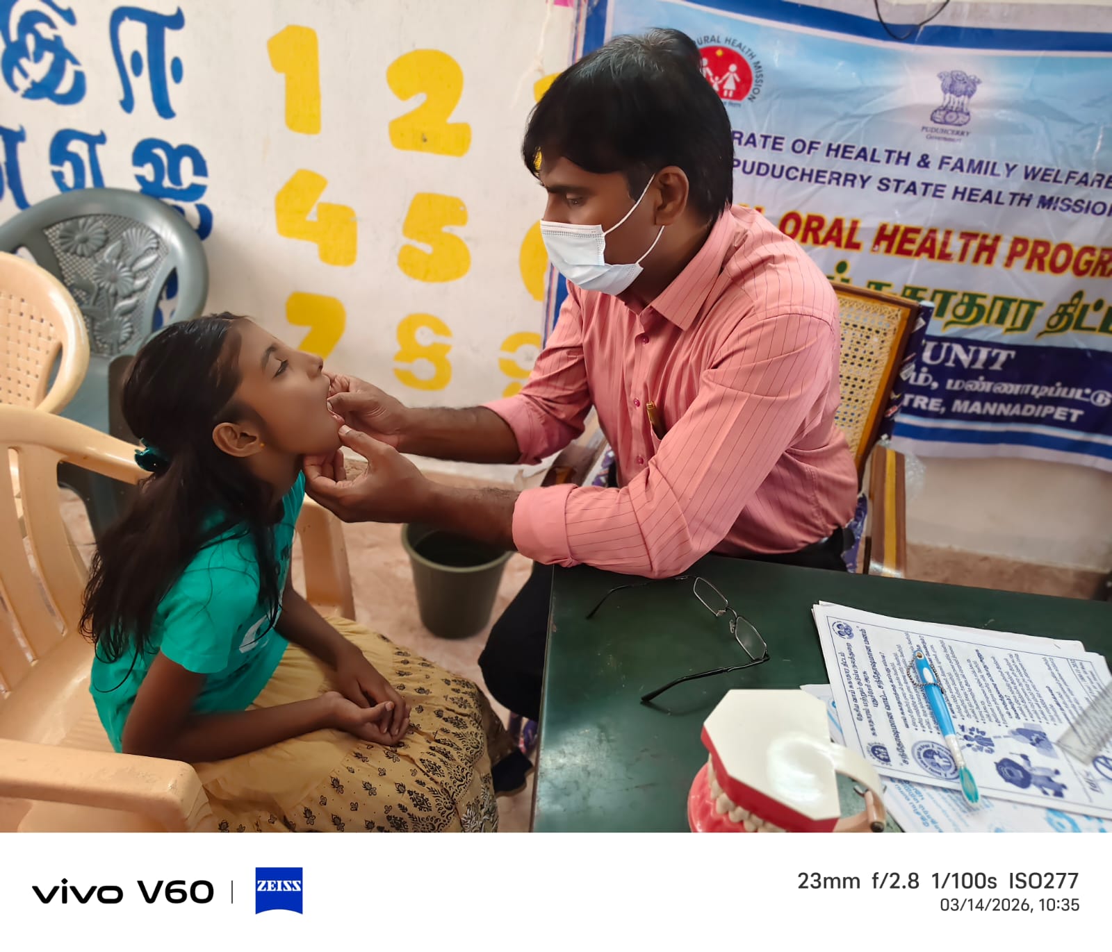As a part of world oral health day celebration a dental Screening camp conducted in Thirukanur Anganwadi 11 .