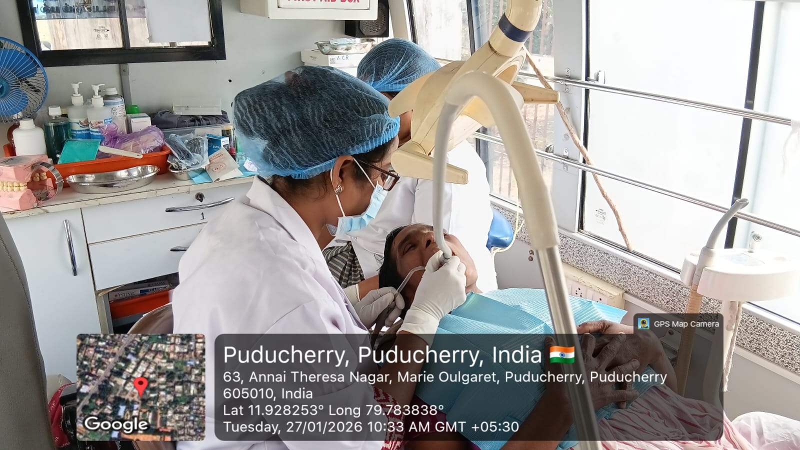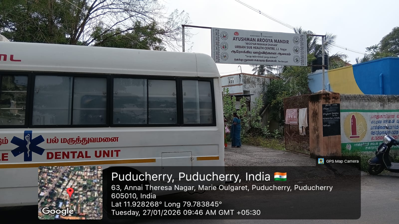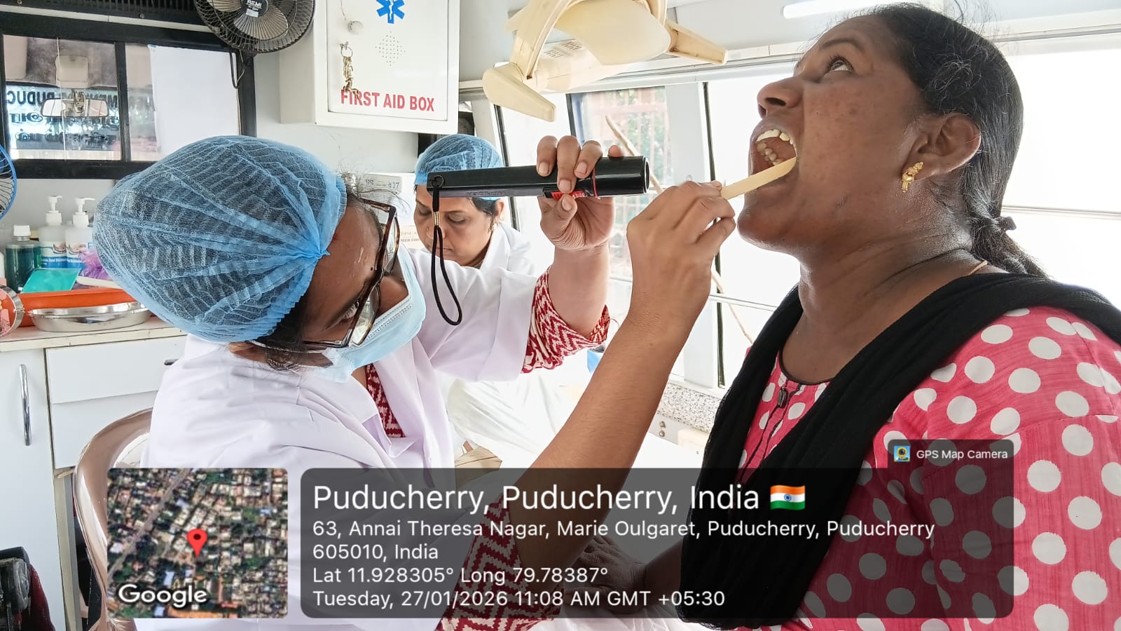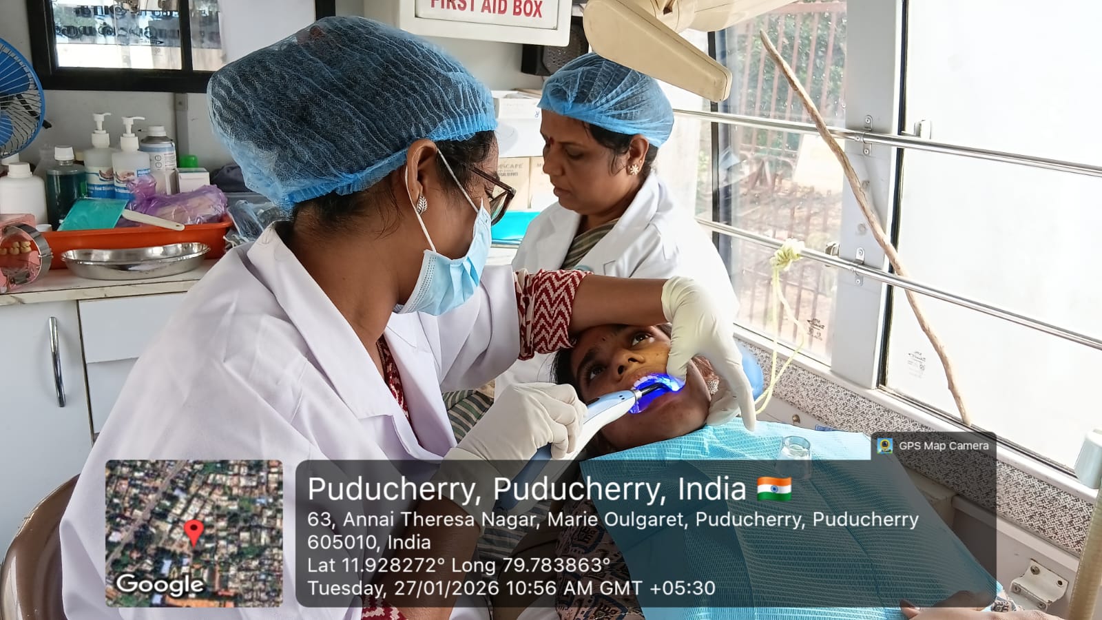 An Oral Screening and trearment camp was conducted at Urban Sub Health Centre , JJ Nagar, Moolakkulam, on 27-01-2026 to promote community oral health. The program included general oral screening and dental check-ups for the public. Awareness on oral hygiene and dental care was provided using dental models and banners.Brushing techniques demonstrations to help participants understand proper brushing techniques and preventive practices. A tobacco awareness talk was also delivered to educate the public on the harmful effects of tobacco on oral health. In addition, special oral hygiene instructions were given to mothers attending the _well-baby_ clinic, emphasizing early dental care for children. Overall, the camp was beneficial, with nearly *53* participants receiving guidance and screening services.