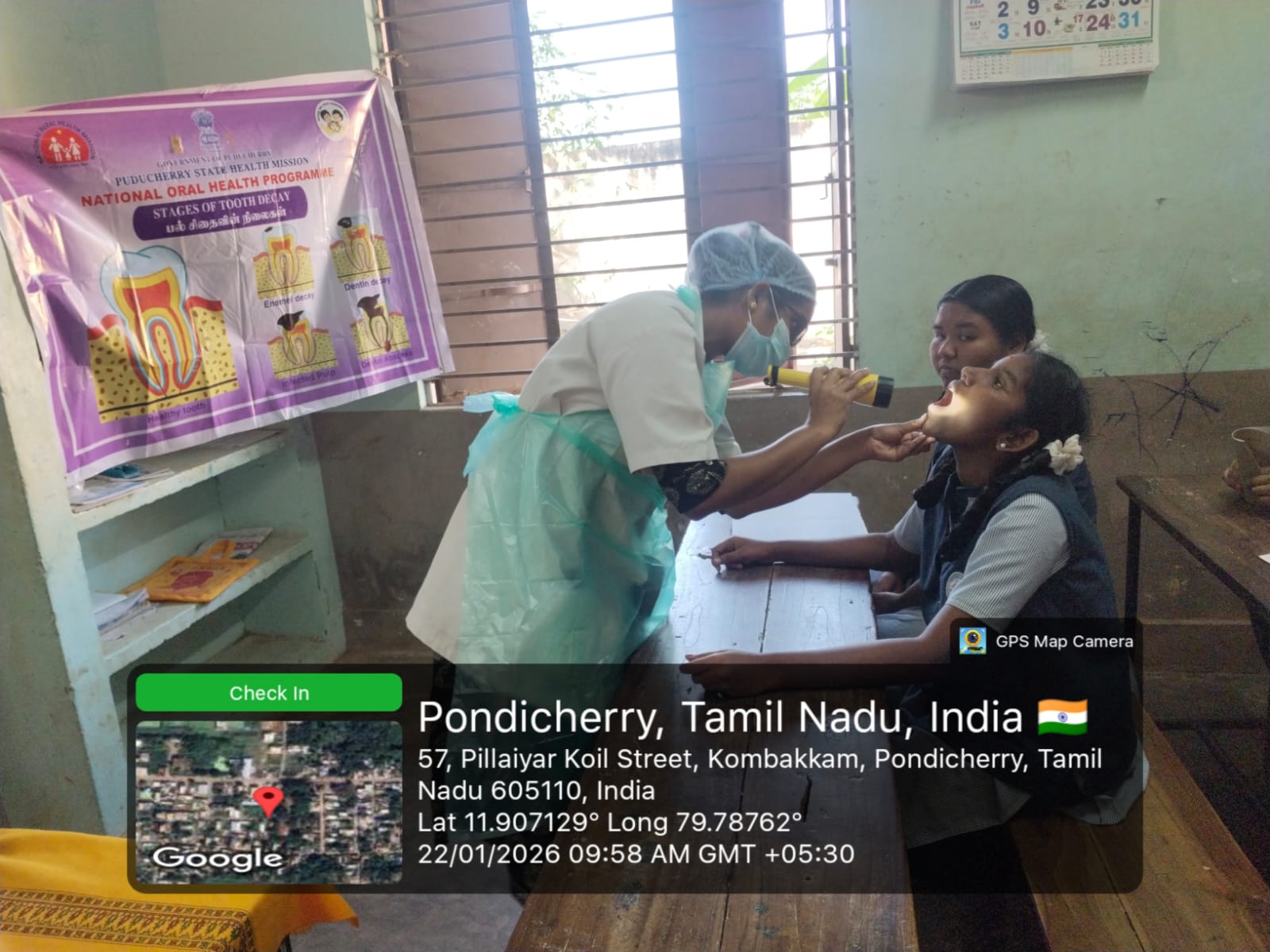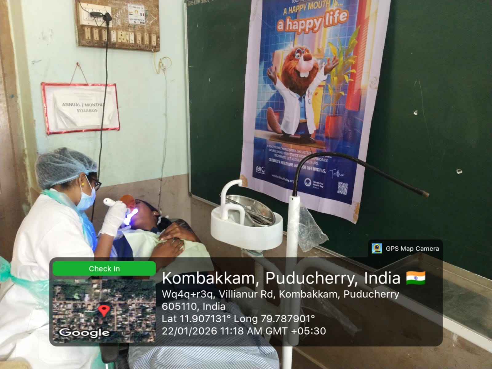 An oral health and tobacco awareness program was conducted by the School - MDU team at _Government High School,_ Kombakkam, on 22/01/2026. A health talk was delivered to students on the ill effects of tobacco and the importance of preventing oral cancer. The theme *“Happy Mouth Is A… Happy Life”* was introduced to emphasize the role of good oral hygiene in overall well-being. Oral hygiene education was provided, and correct brushing techniques were demonstrated using posters, banners, and dental models.