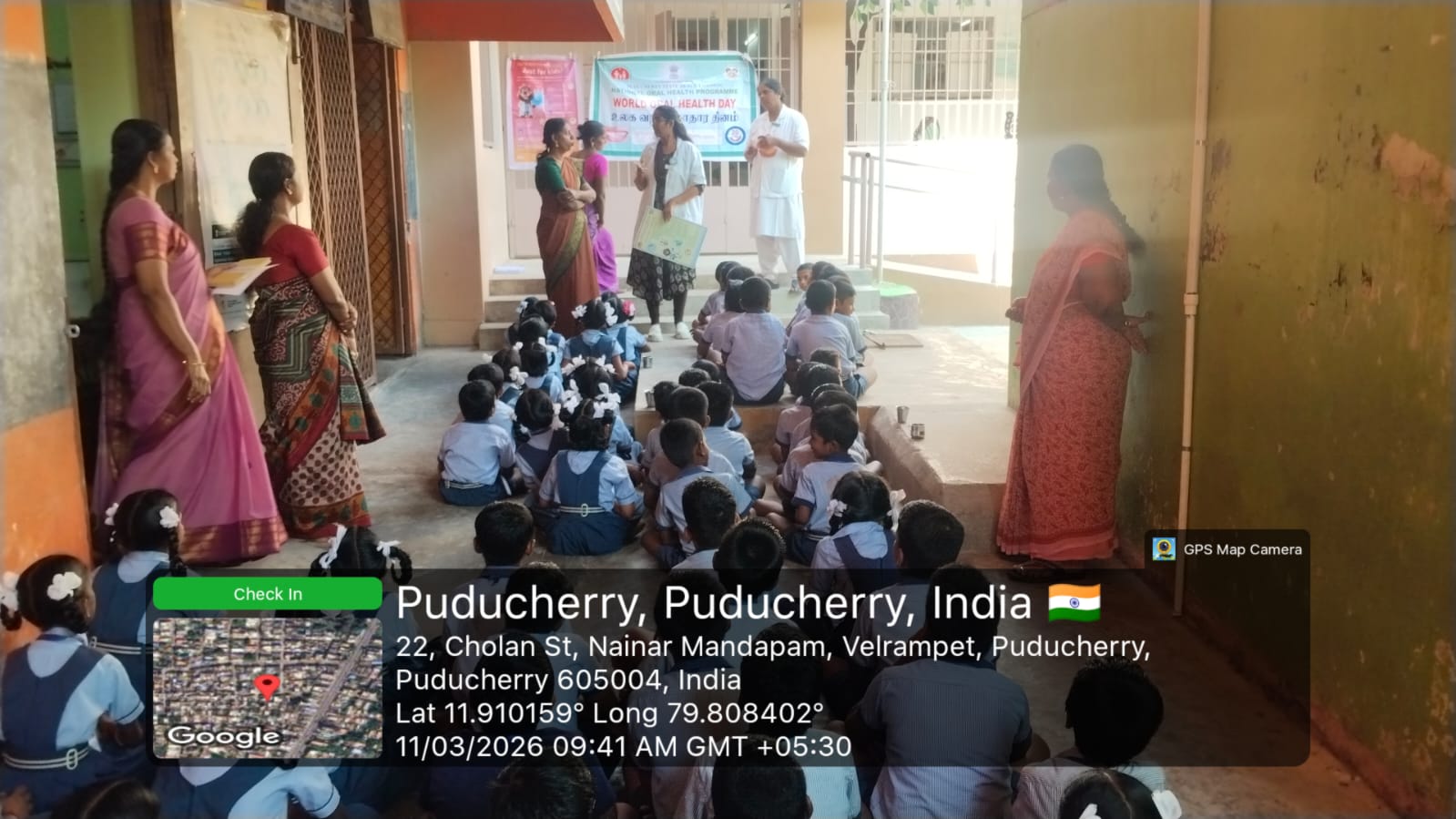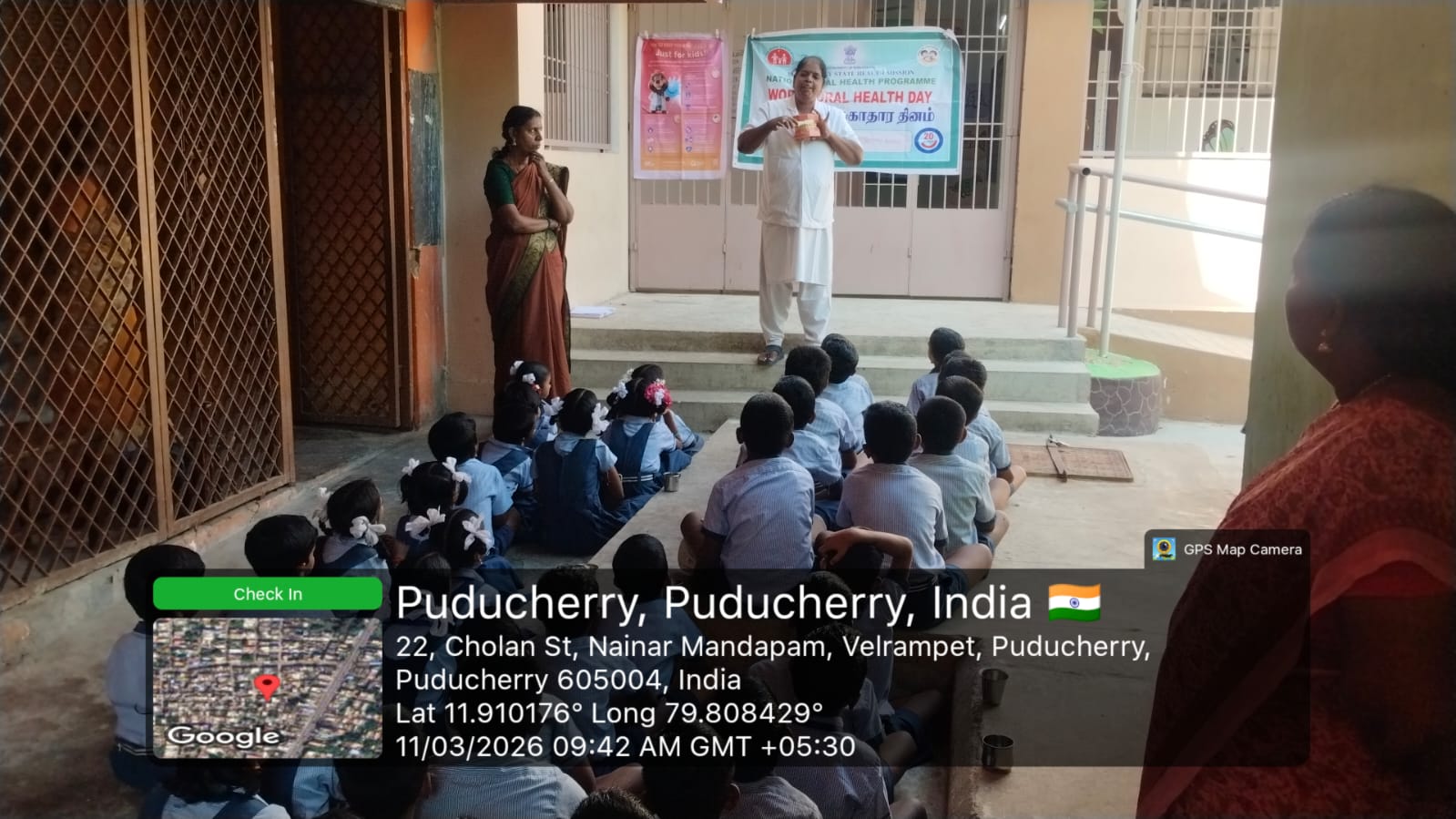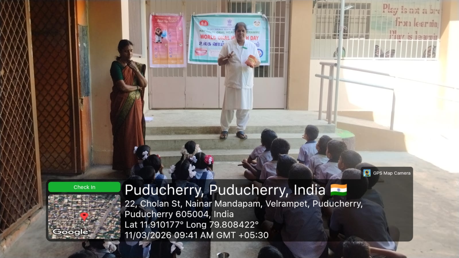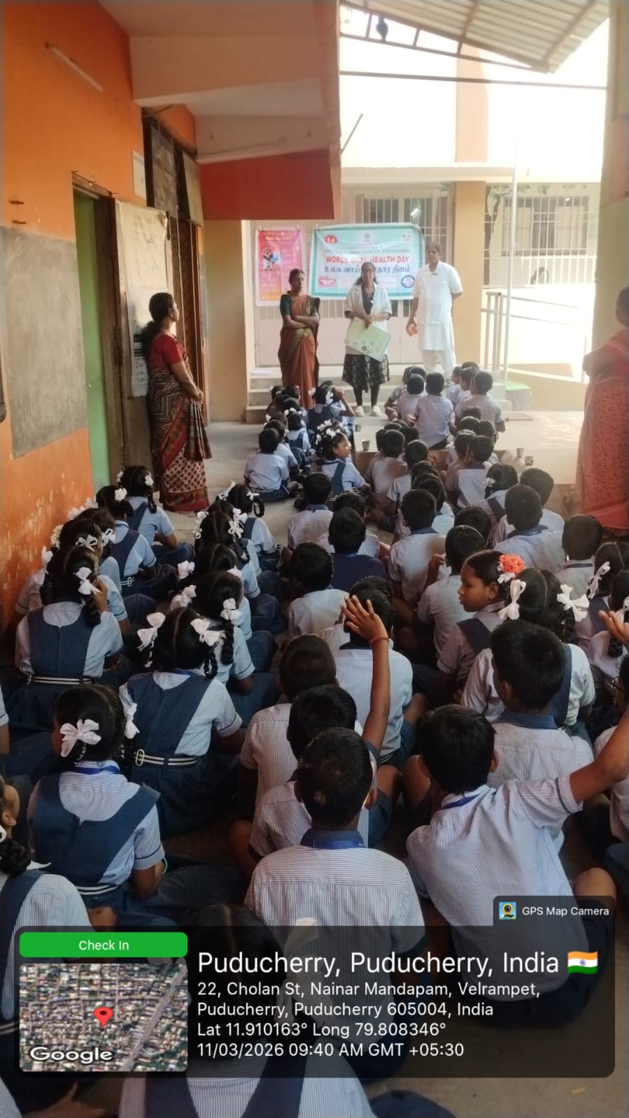 As part of the World Oral Health Day celebrations, an oral health awareness session was conducted at *Government Primary School Nainarmandapam* on 11.03.2026. School students were educated about the importance of maintaining good oral hygiene and healthy dental habits. Proper brushing techniques were clearly demonstrated using dental models to help students understand the correct method of brushing. The session encouraged children to take care of their teeth and practice daily oral hygiene. Nearly *103* students benefited from this awareness program.
