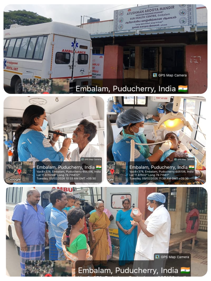 "An oral screening and treatment camp was conducted at Embalam centre on 03-02-2026.
