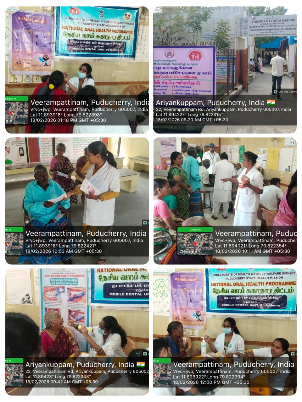 An oral screening camp was conducted at *Periyaveerampattinam* on 18-02-2026 as part of the _Seashore Integrated Health Camp_ organized by *Pondicherry AIDS Society Organization.* The camp aimed to improve oral health awareness and provide early screening services to the coastal community. Informative fact sheets were displayed to educate the public about the harmful effects of tobacco use and the importance of maintaining good oral hygiene.